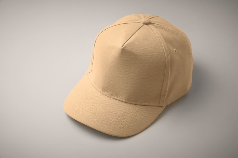5 panel baseball cap in cotton twill 180 gr/m2 with adjustable hook and loop closure. Dimensions: 20 x 17 x 11 cm