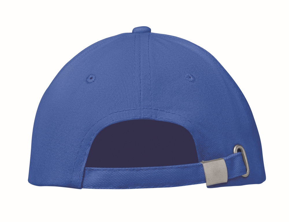 6 panel baseball cap in brushed cotton 260 gr/m2 with stainless steel buckle. Size 7 1/4. Dimensions: 21 x 17 x 11 cm