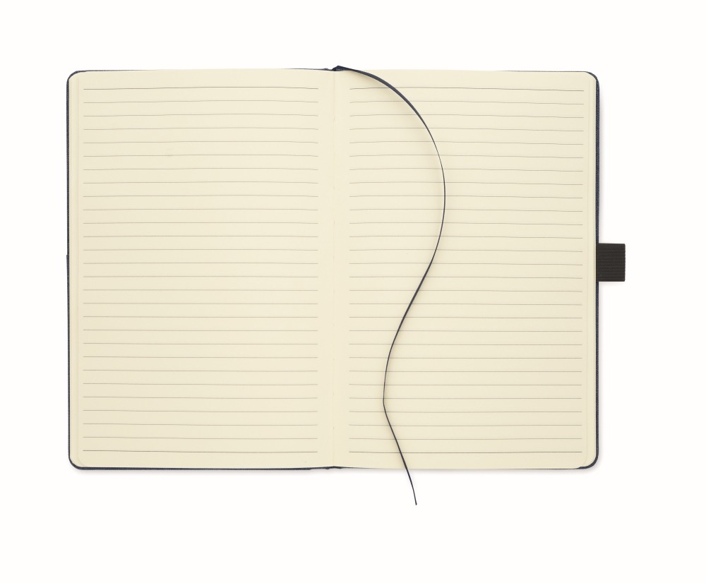 Case bound. 160 recycled paper lined pages (80 sheets). Matching ribbon bookmark. Dimensions: 23 x 14 x 1,2 cm
