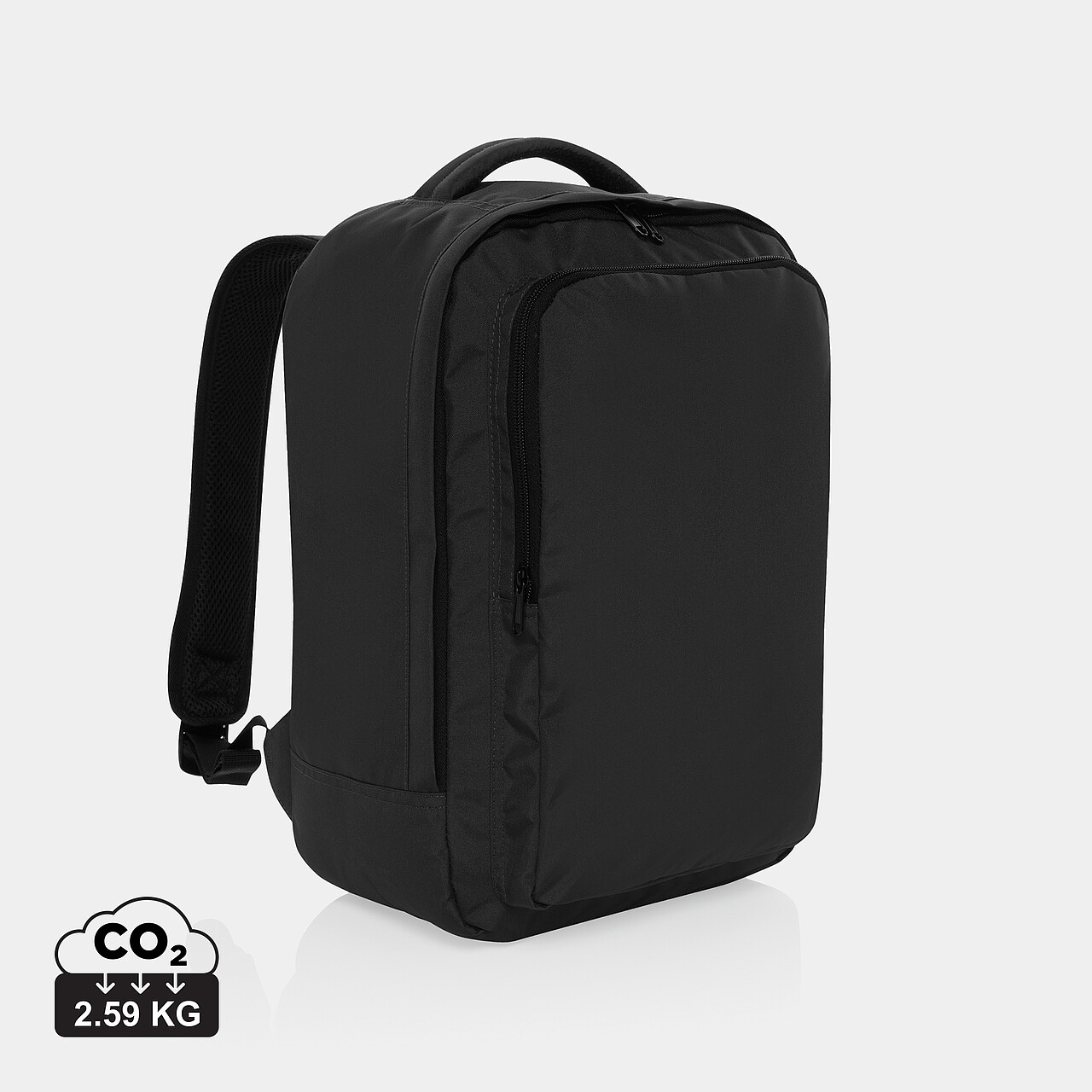 The Ace Aware™ RPET Free On Board Travel Pack is designed for the budget-conscious traveler who values convenience. Made from 100% rPET, this compact backpack features adjustable shoulder straps, a webbing handle on top, and a front zipper pocket for quick access to essentials. The main compartment includes an elastic trolley strap for added functionality, and with a 16L capacity, it fits under any airline seat. Perfect for weekend trips, this backpack meets the maximum free carry-on size requirements for budget airlines, ensuring no extra fees for your bag. Made with recycled polyester embedded with the AWARE™ tracer. 2% of proceeds of each product sold with AWARE™ will be donated to Water.org. PVC free.