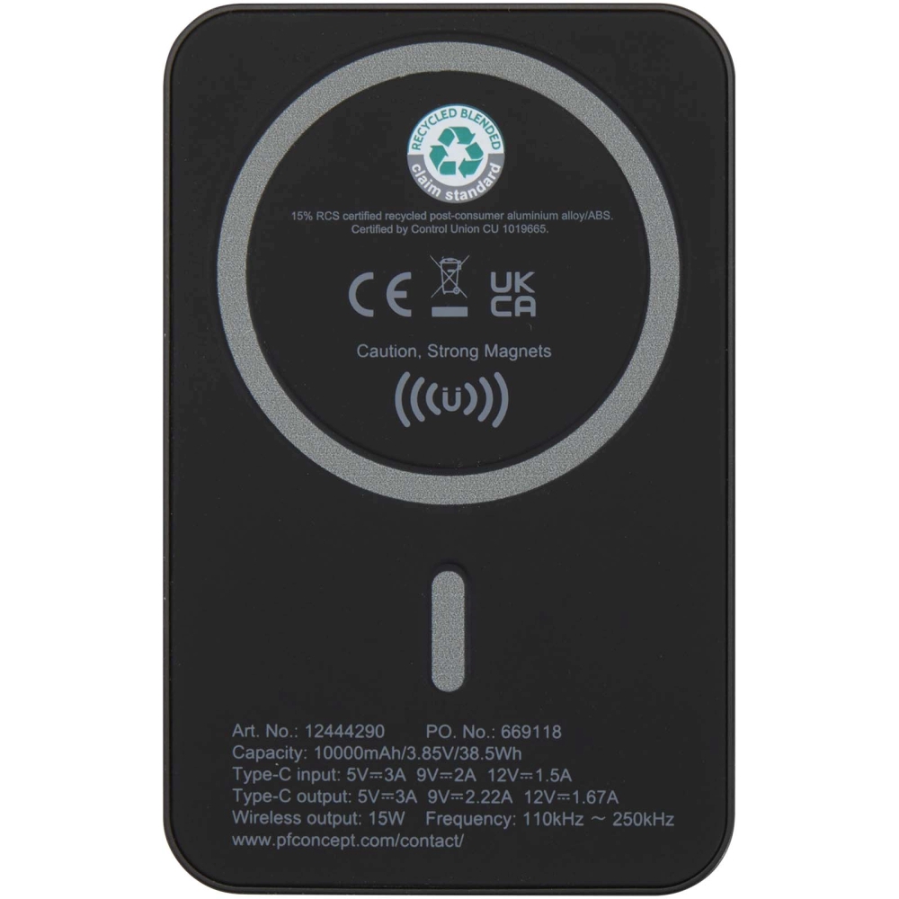 Acrab 10.000 mAh 15W magnetic wireless power bank with 20W PD - made from recycled plastic, solid black