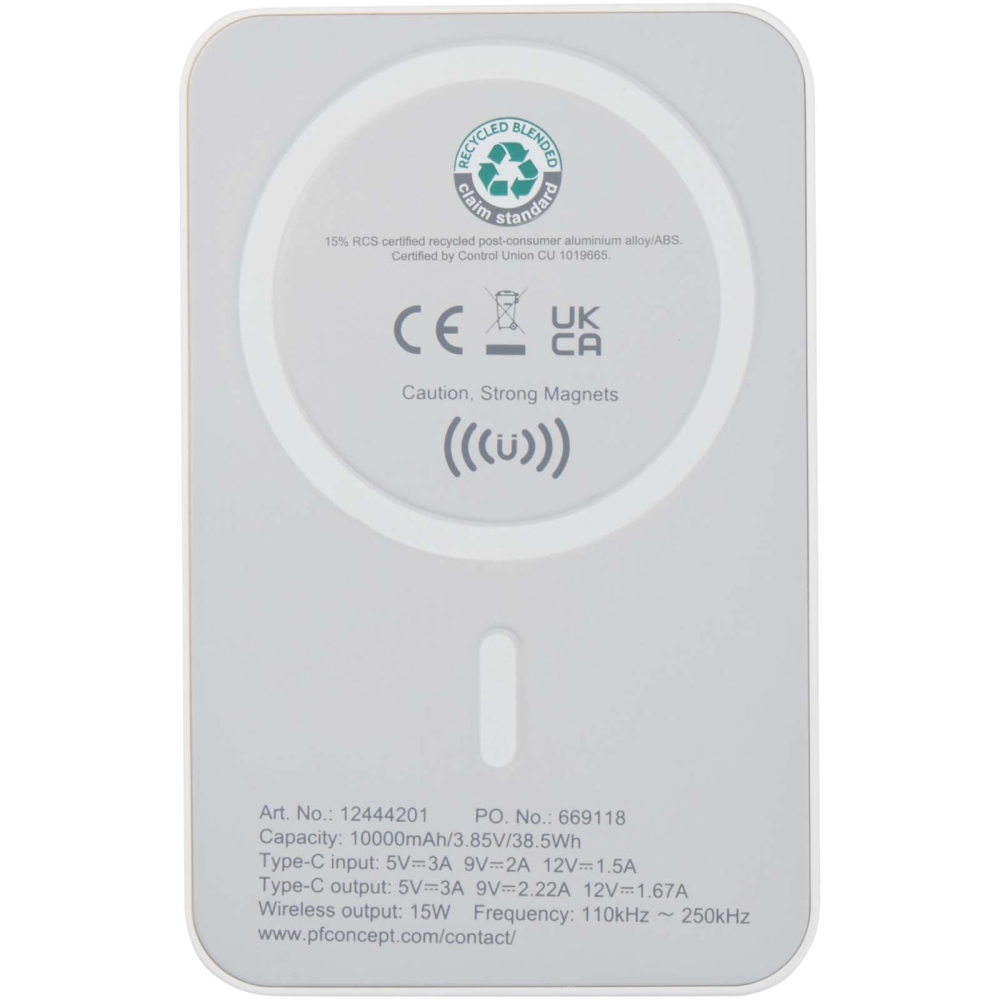 Acrab 10.000 mAh 15W magnetic wireless power bank with 20W PD - made from recycled plastic, white