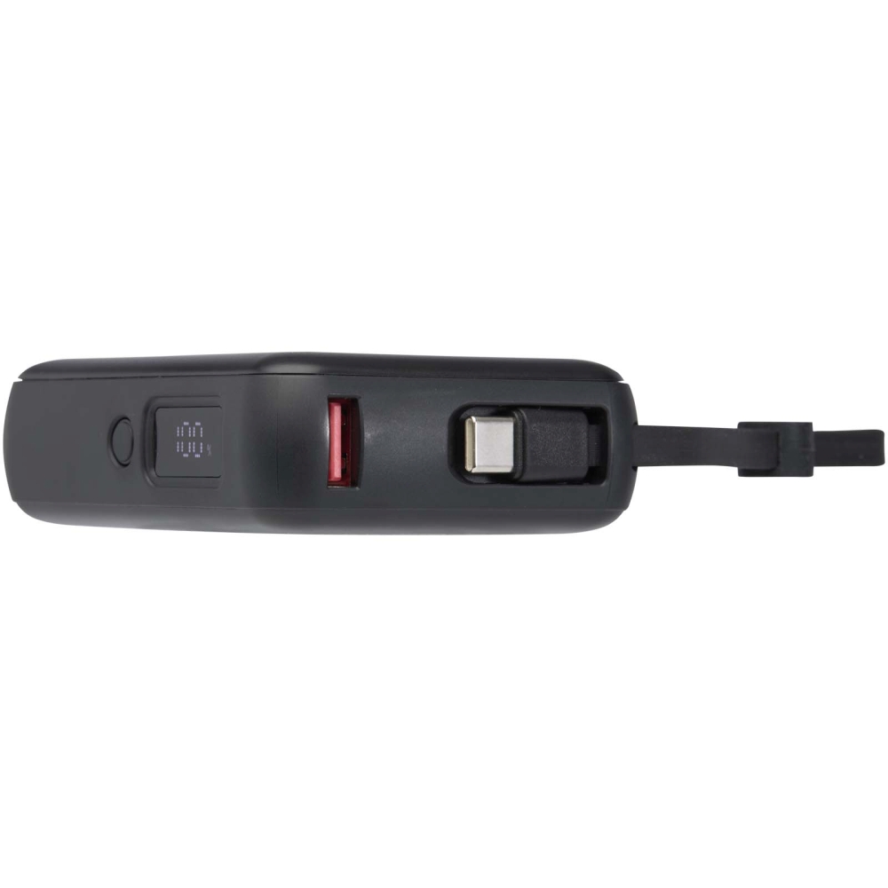 Acrux 10.000 mAh 35W tablet power bank with built in Type-C cable - made from recycled plastic, solid black