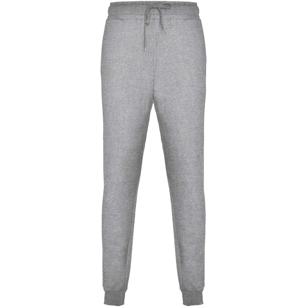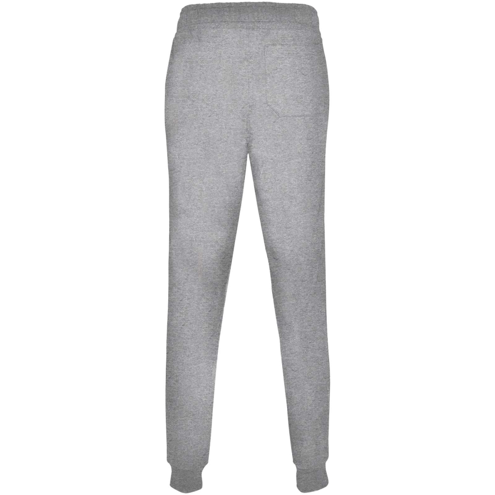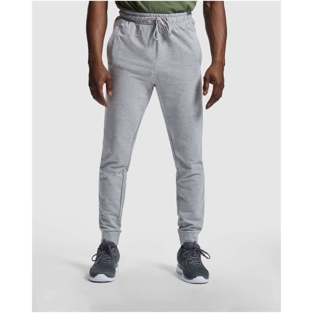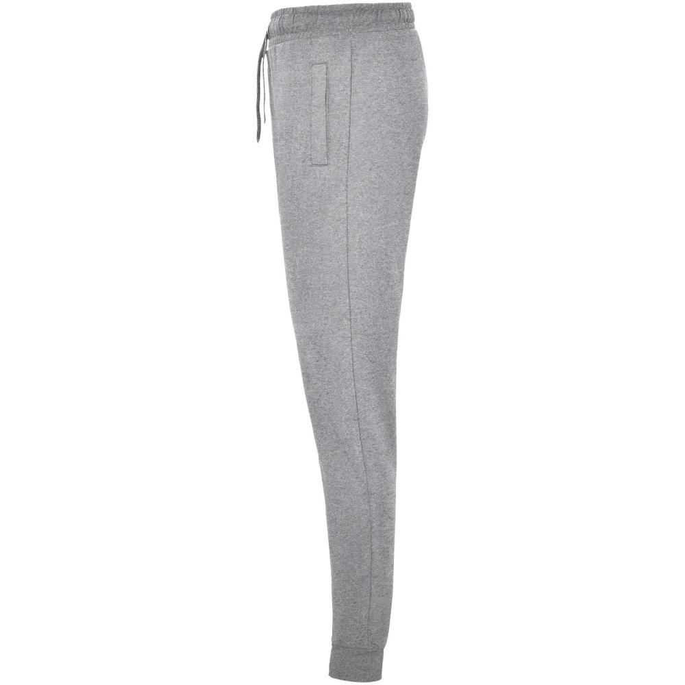 Sports trousers with wide adjustable waistband, drawcord, fitted cuffs on legs, reinforced seams, ribbed side pockets and corner back pocket with stitched view. Removable label.