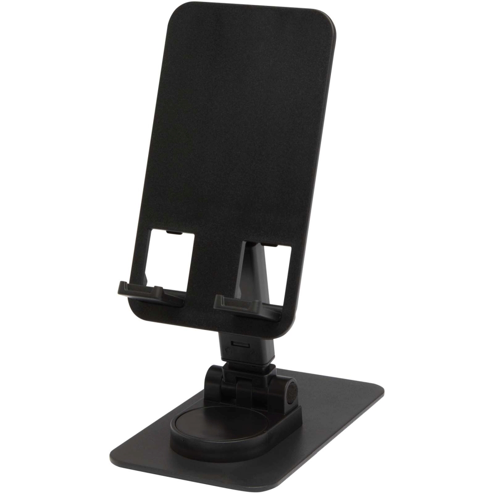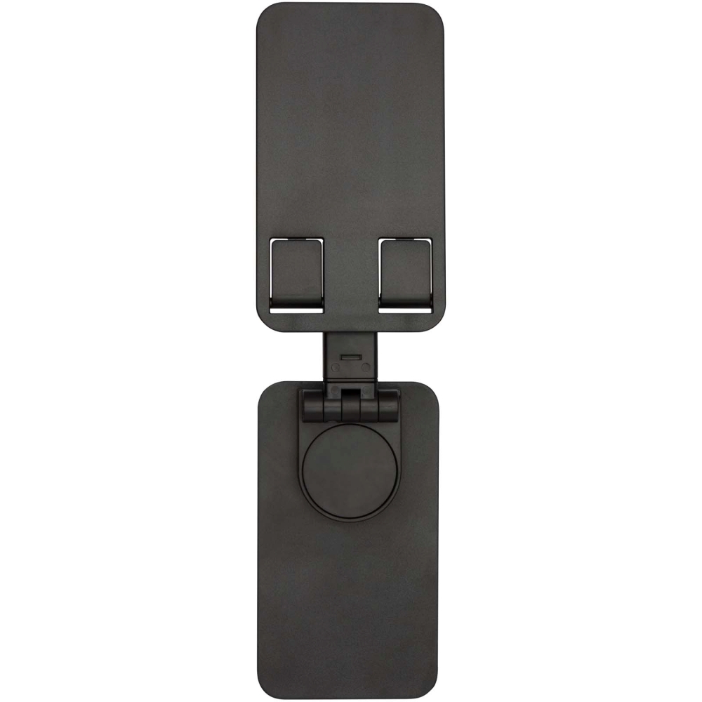 Alhena recycled plastic foldeable phone holder with metal desk stand, solid black