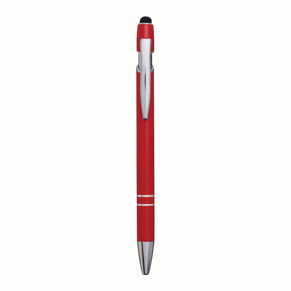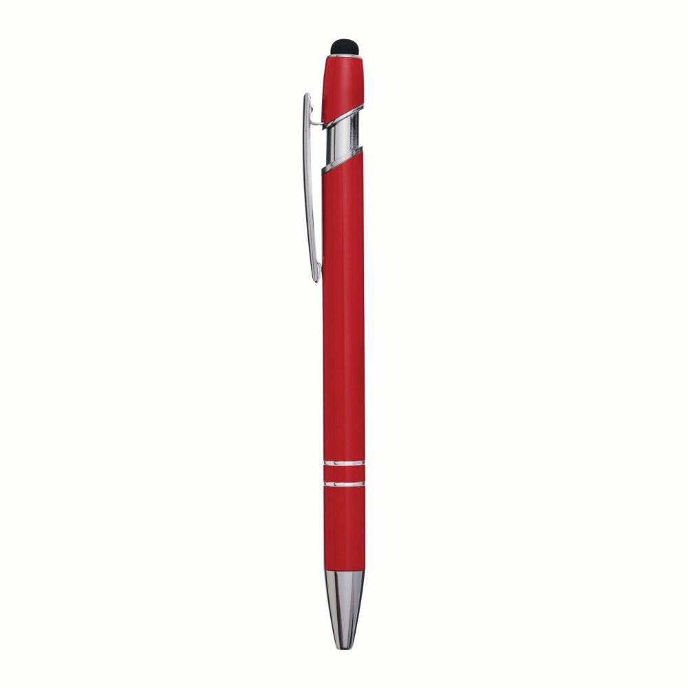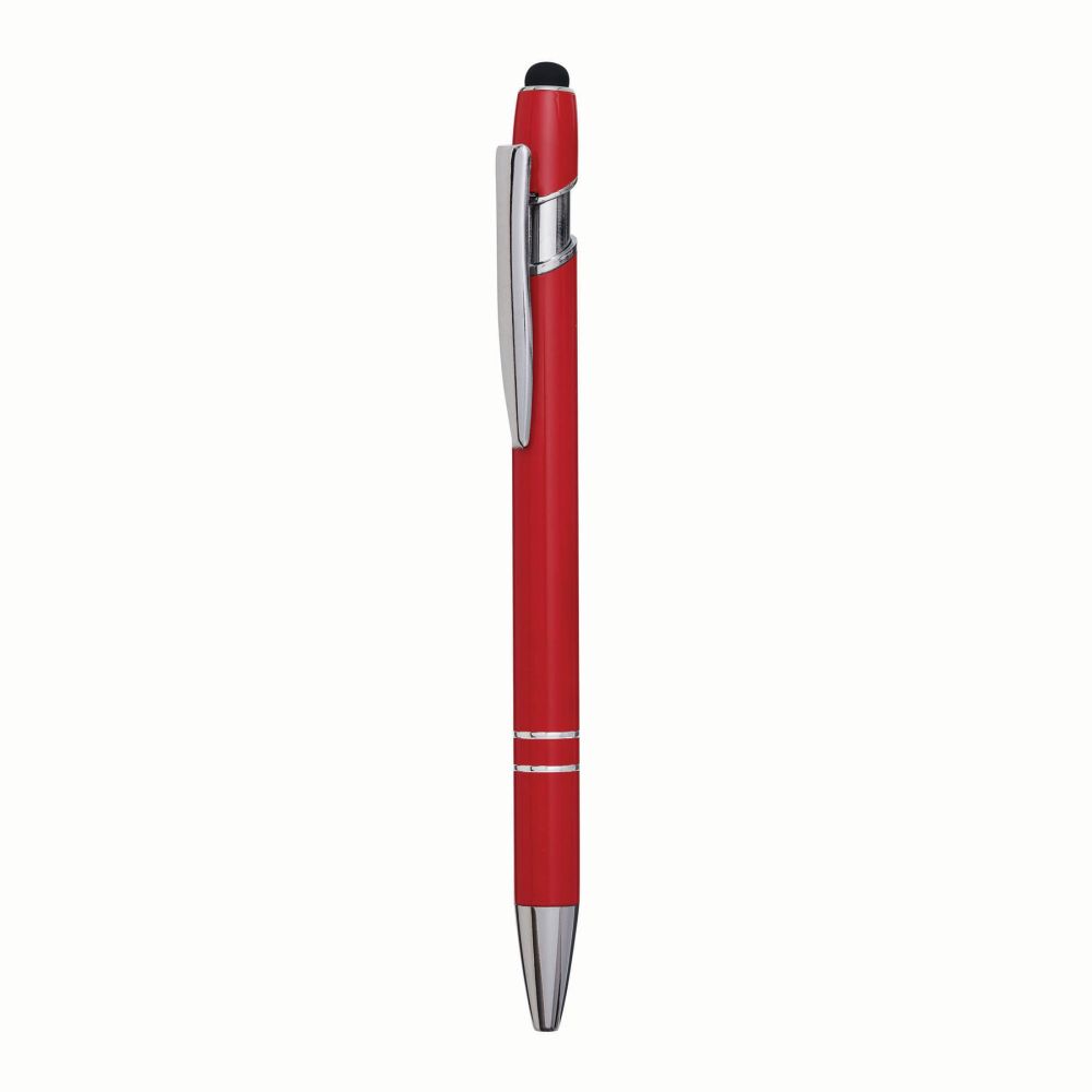 Aluminium ballpoint pen MERCHANT with shiny metal body, pressure mechanism, touchscreen tip at the end, blue ink