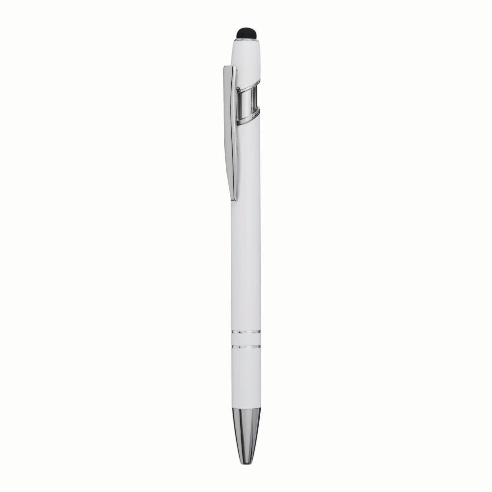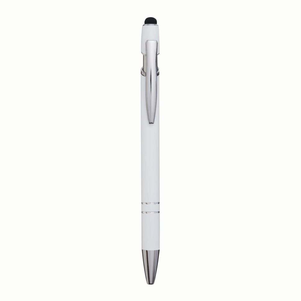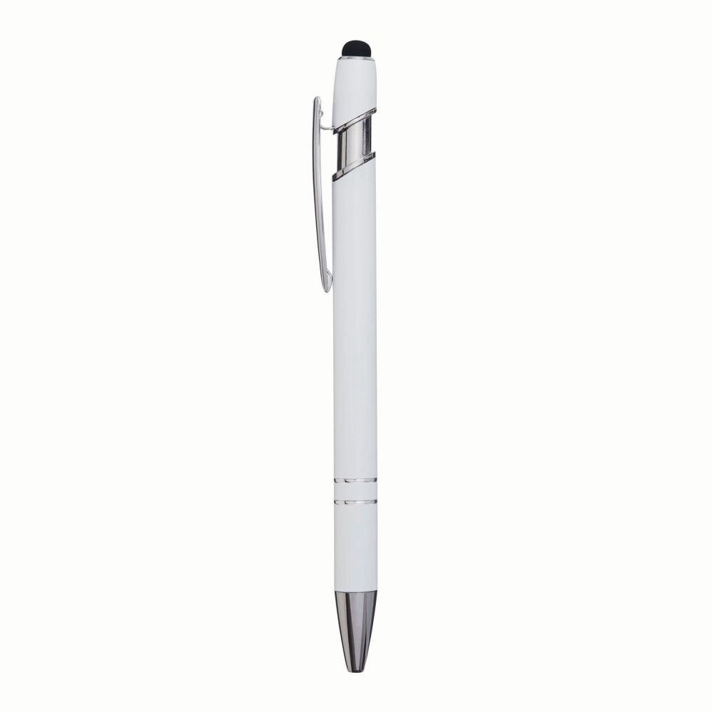 Aluminium ballpoint pen MERCHANT with shiny metal body, pressure mechanism, touchscreen tip at the end, blue ink