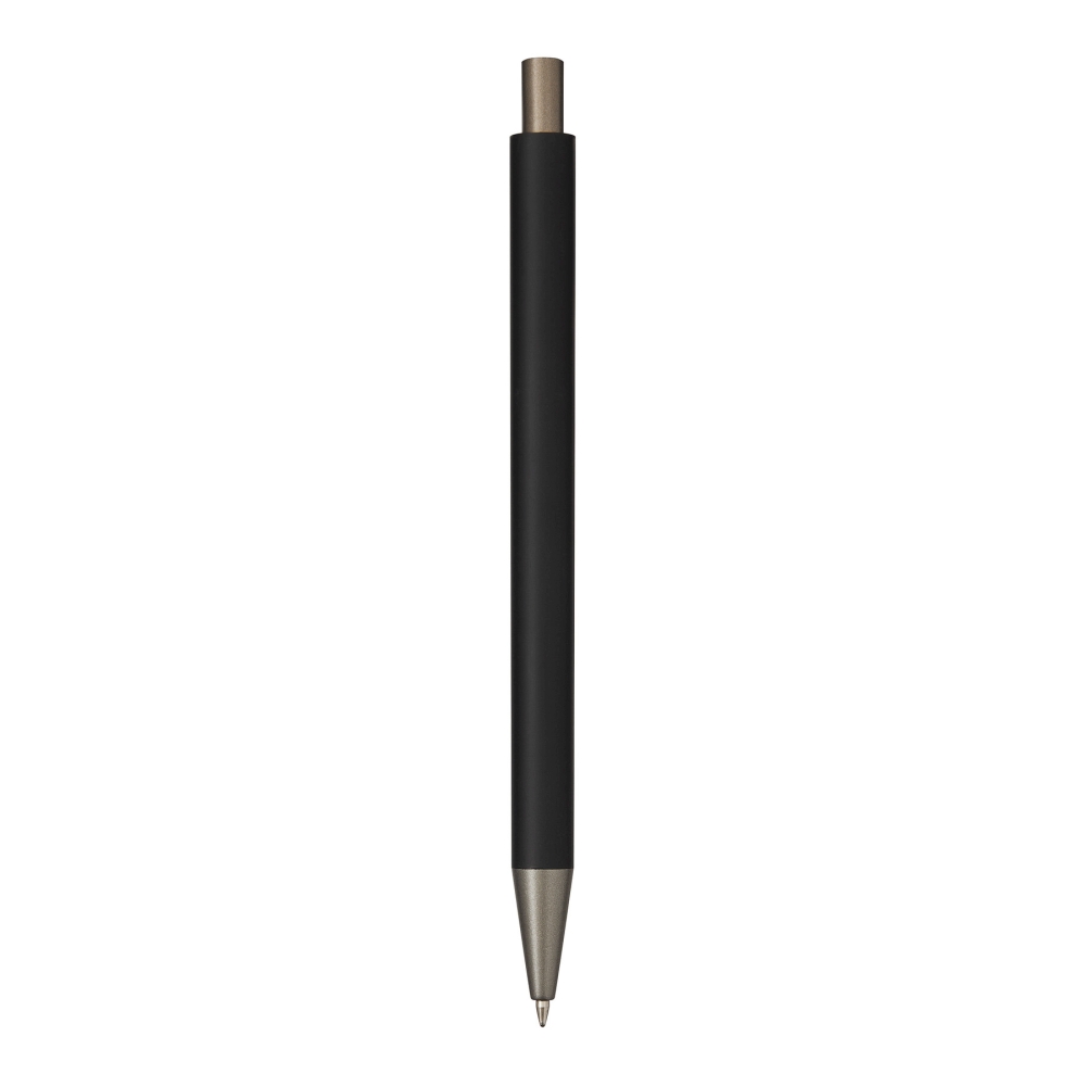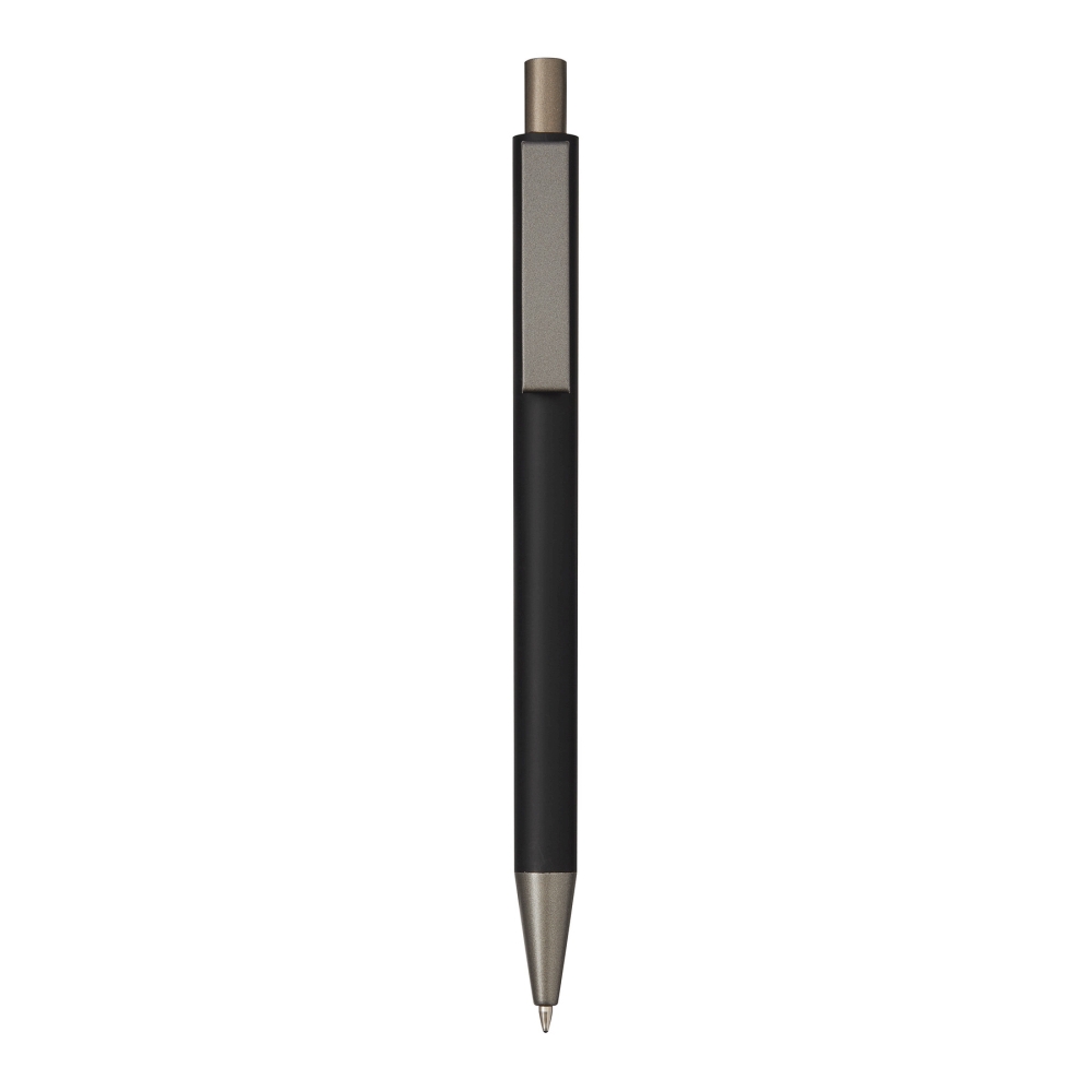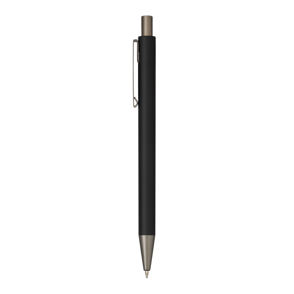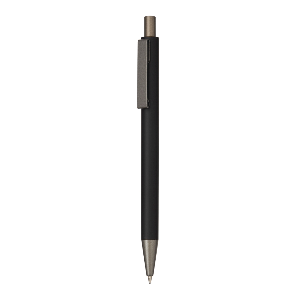 Aluminium ballpoint pen: matt metal barrel, push mechanism, large refill, blue ink. Dimensions: 14,2 cm