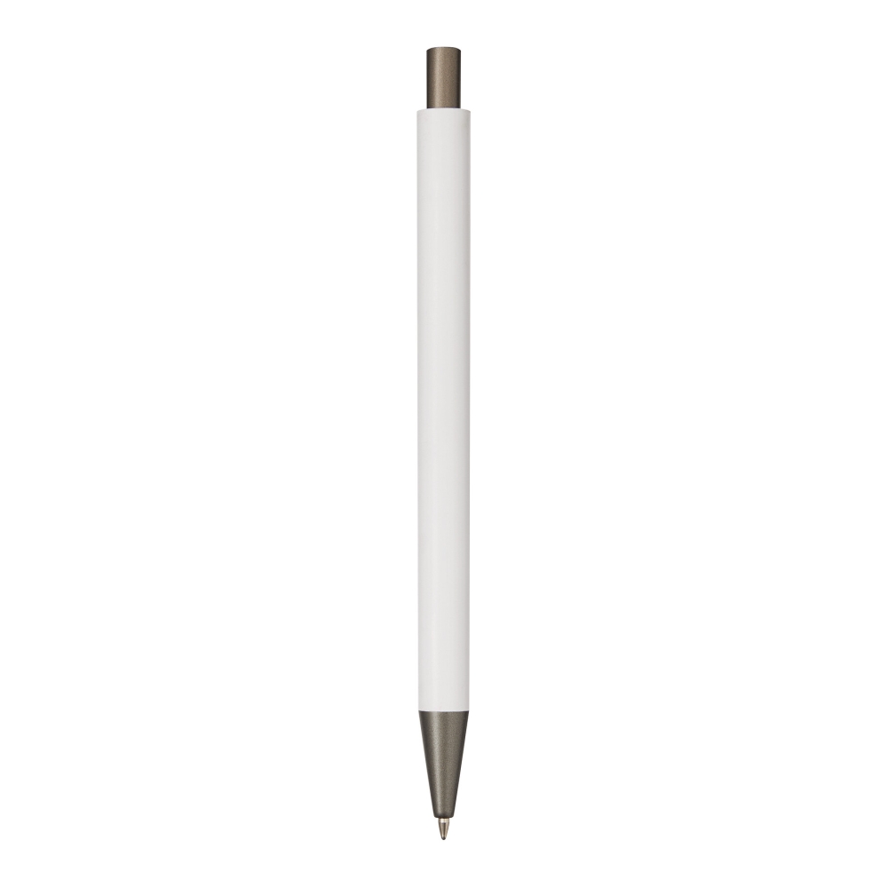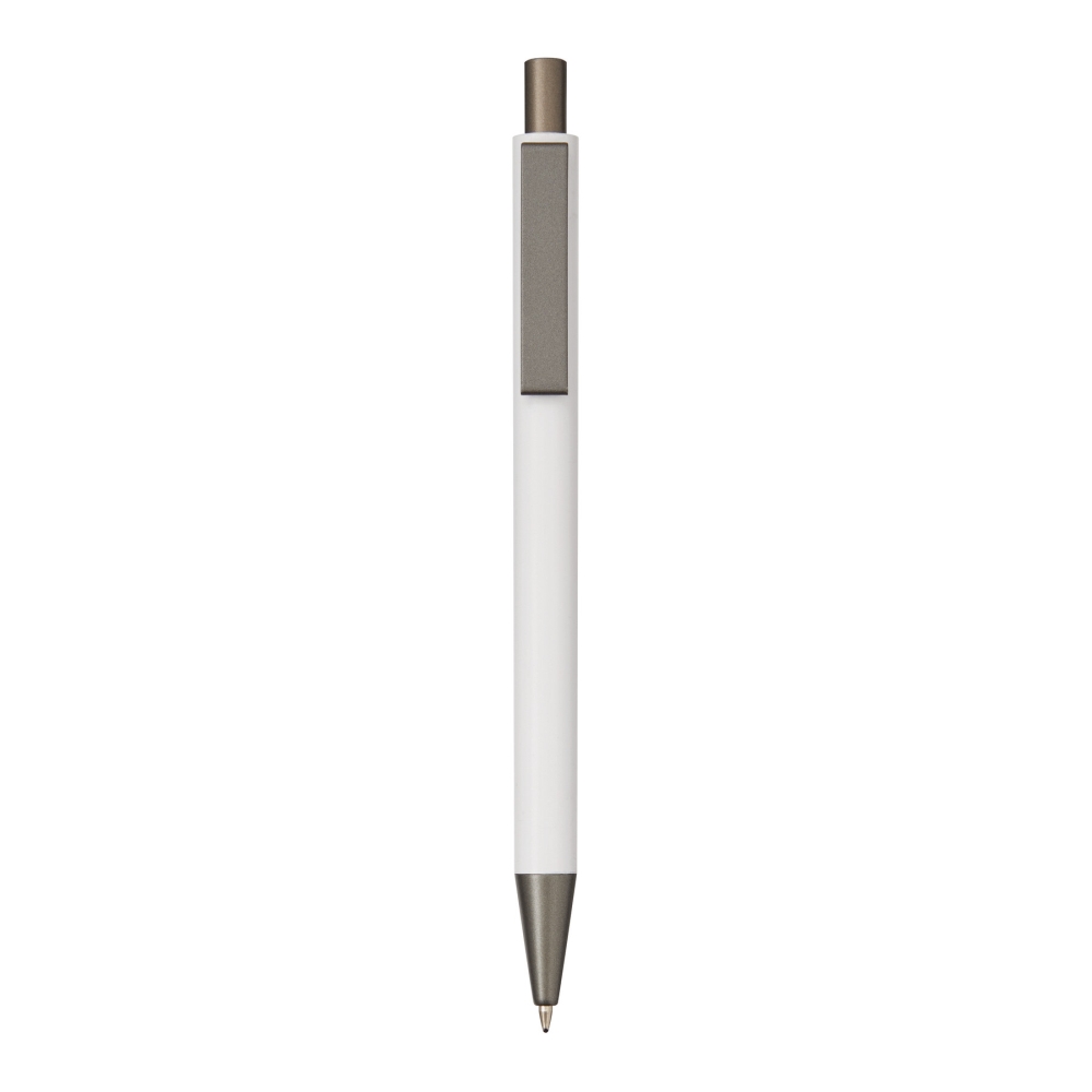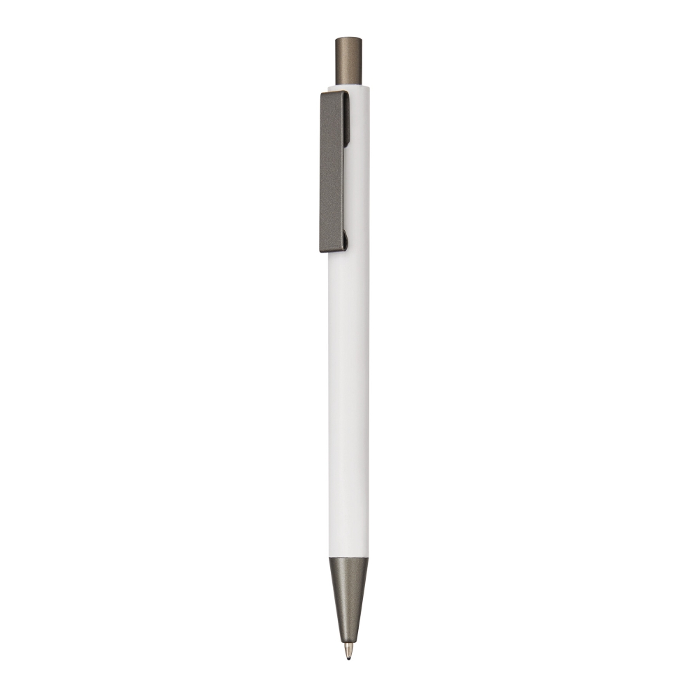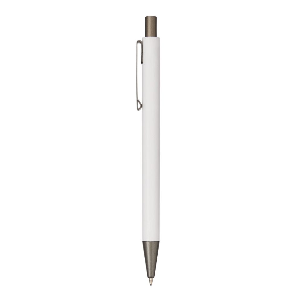Aluminium ballpoint pen: matt metal barrel, push mechanism, large refill, blue ink. Dimensions: 14,2 cm