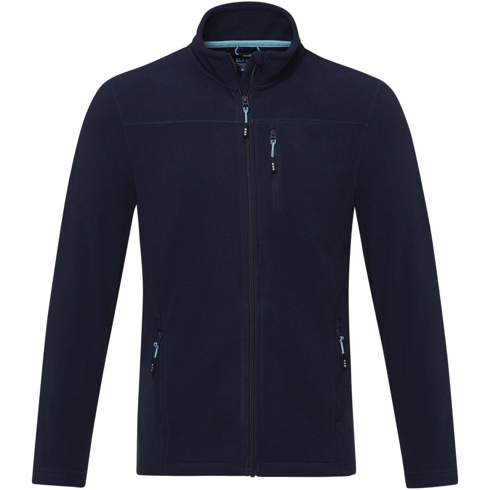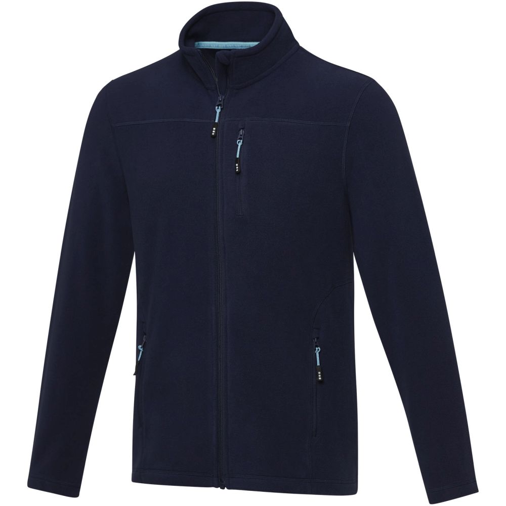 GRS recycled center front zipper coil zipper. Inner stormflap with chinguard. Front pockets with zipper. Chest pocket with zipper closure. Easy grip zipper pullers. Branded hangerloop. Necktape. Halfmoon. Heat transfer main label for tagless comfort.