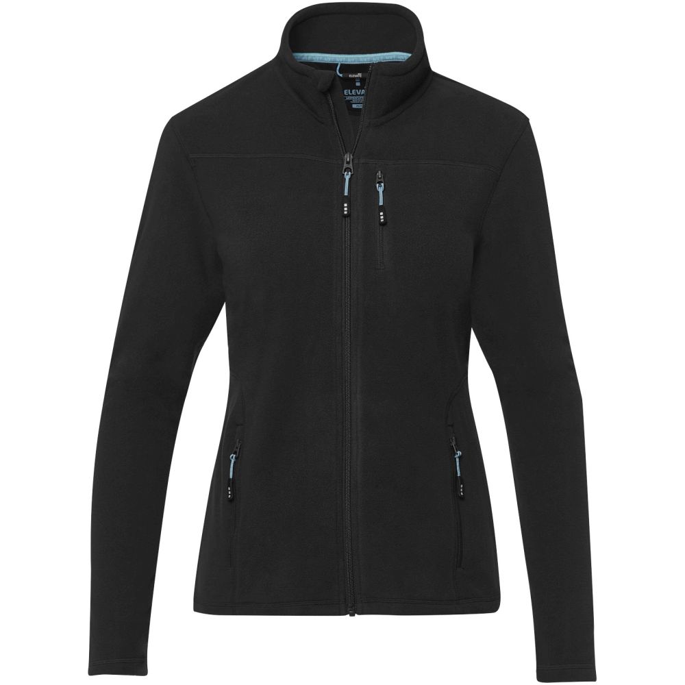 GRS recycled center front zipper coil zipper. Inner stormflap with chinguard. Front pockets with zipper. Chest pocket with zipper closure. Easy grip zipper pullers. Branded hangerloop. Necktape. Halfmoon. Heat transfer main label for tagless comfort.