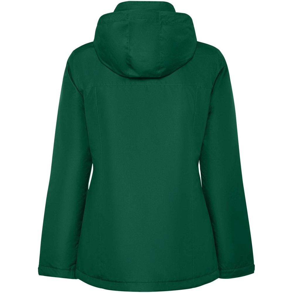 Waterproof padded parka jacket for women. Slim-fit. High collar with folded and removable hood with hook & loop closure. Matching central zipper with flap. Side pockets with zipper and fixed flap. Interior pocket with hook & loop closure. Adjustable cuffs with hook & loop belt loop. Interior access for reinforcements on the back and left chest.