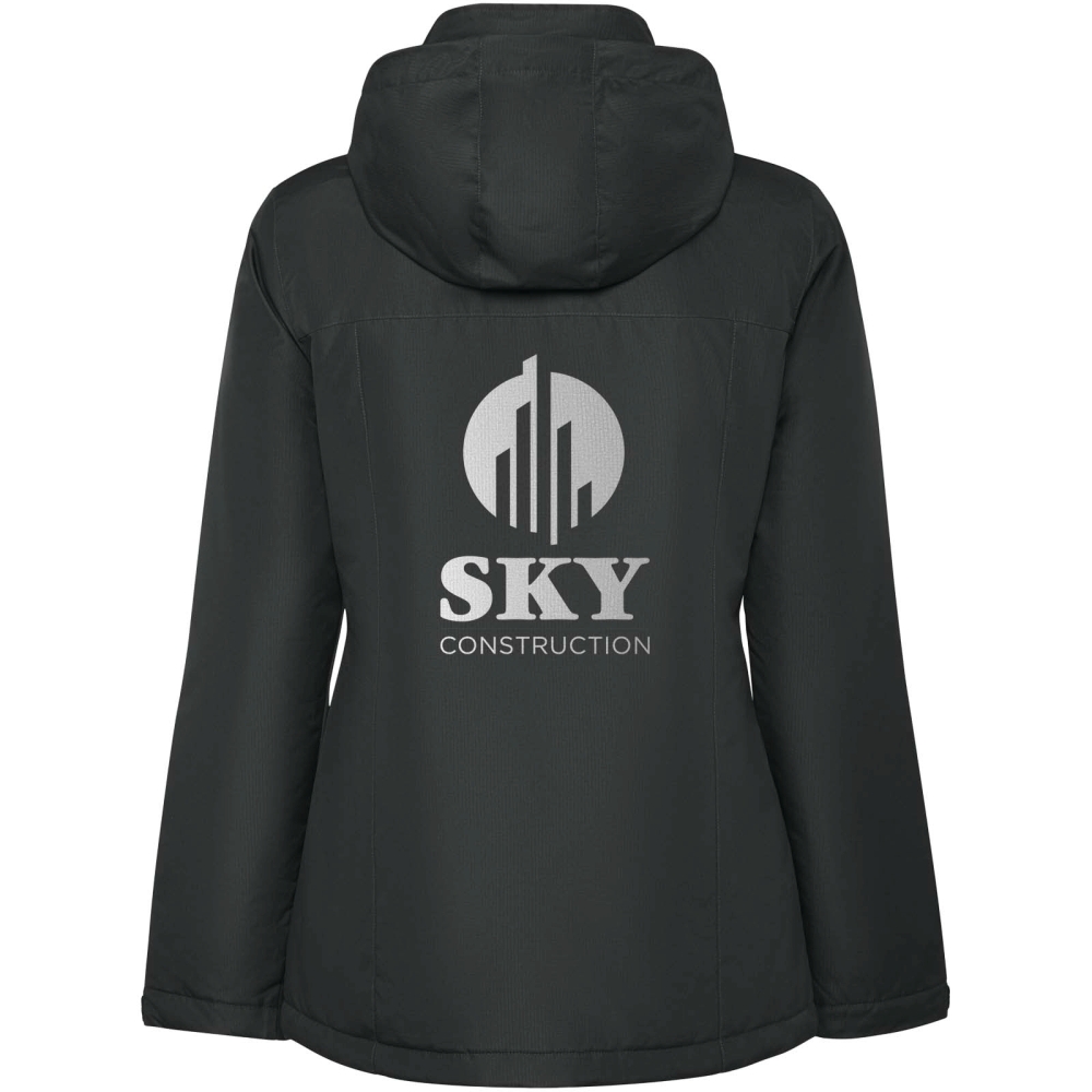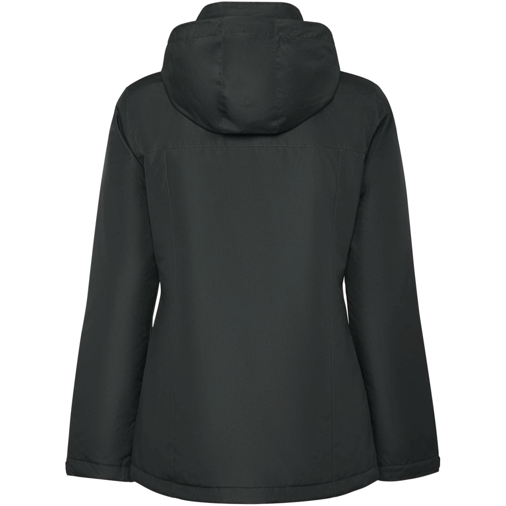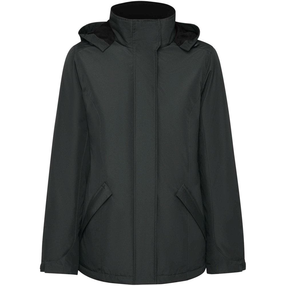 Waterproof padded parka jacket for women. Slim-fit. High collar with folded and removable hood with hook & loop closure. Matching central zipper with flap. Side pockets with zipper and fixed flap. Interior pocket with hook & loop closure. Adjustable cuffs with hook & loop belt loop. Interior access for reinforcements on the back and left chest.