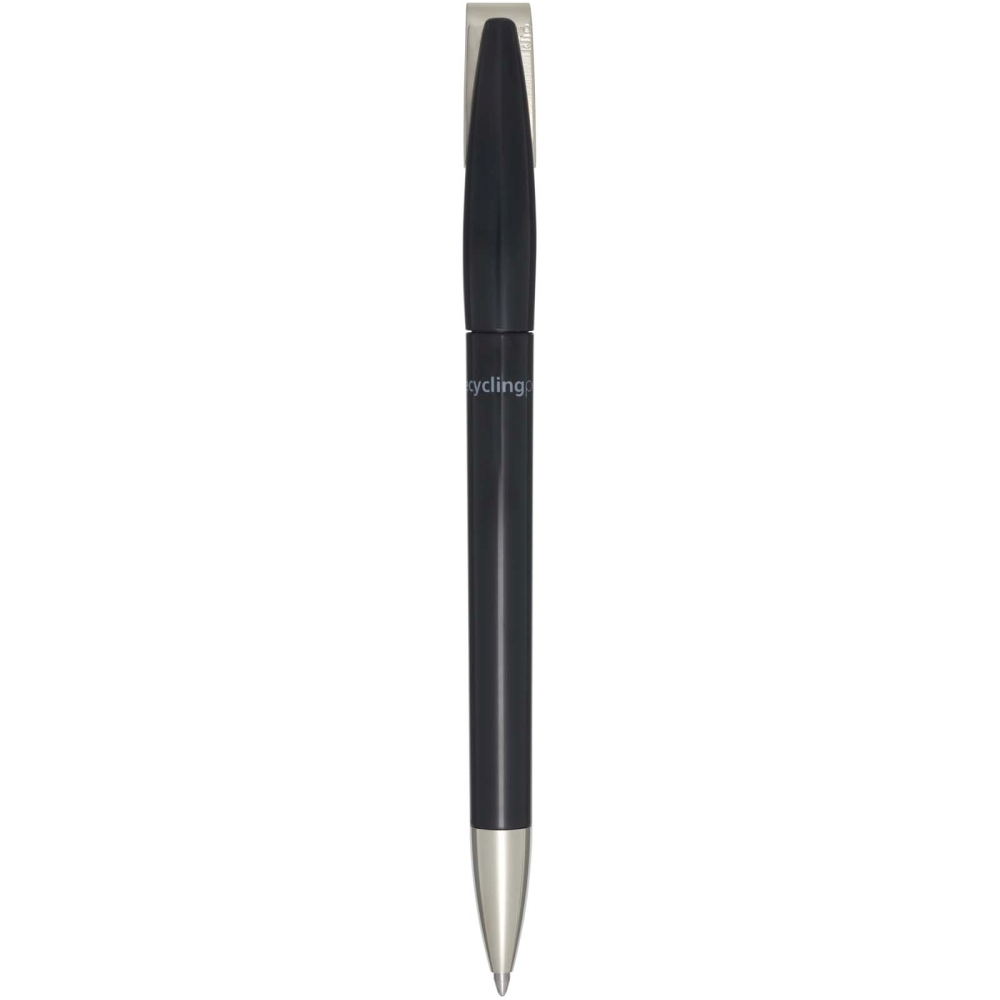 Ballpoint pen with barrel made of recycled plastic, and metal clip and tip. Ink colour: Blue. Writing length: 3000 metres. Nib size: 1.00 mm. Made in Germany. Dimensions: 14,2 x O 1 cm