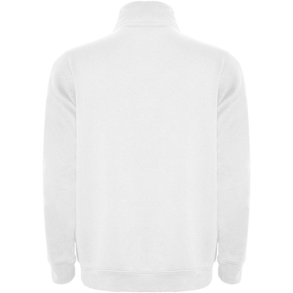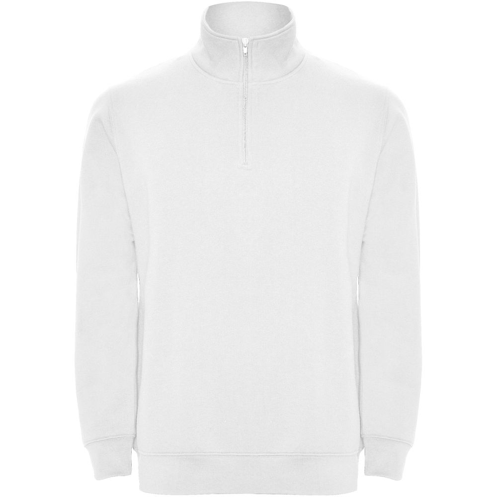 Sweatshirt with matching half zip and polo neck. Matching inner collar. Reinforced covered seams on inner collar. 1x1 ribbed cuffs and waist. The model is 185 cm and is wearing size M.