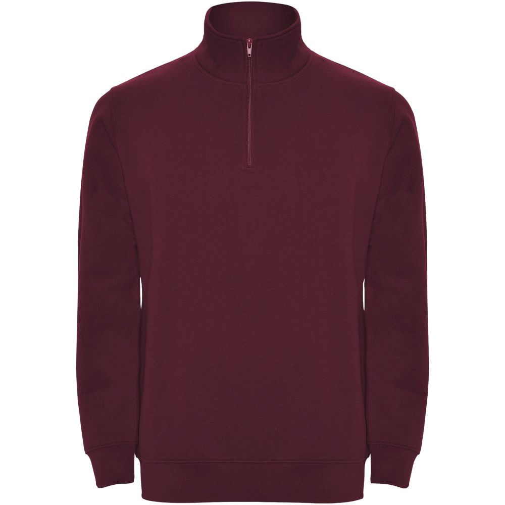 Sweatshirt with matching half zip and polo neck. Matching inner collar. Reinforced covered seams on inner collar. 1x1 ribbed cuffs and waist. The model is 185 cm and is wearing size M.