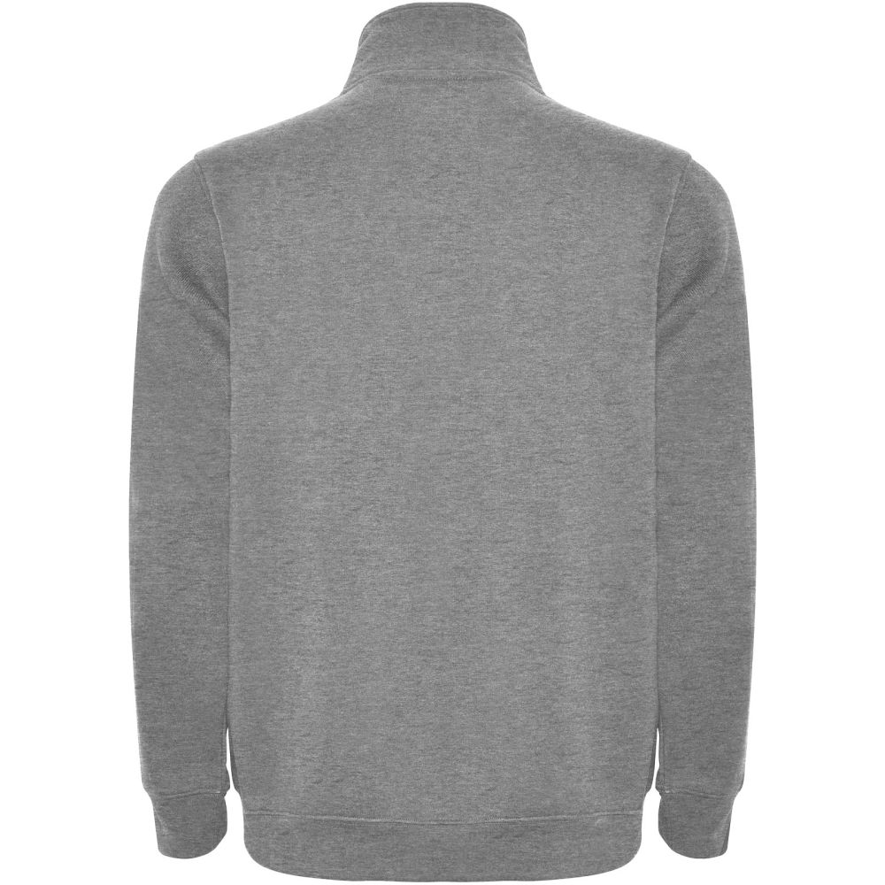 Sweatshirt with matching half zip and polo neck. Matching inner collar. Reinforced covered seams on inner collar. 1x1 ribbed cuffs and waist. The model is 185 cm and is wearing size M.