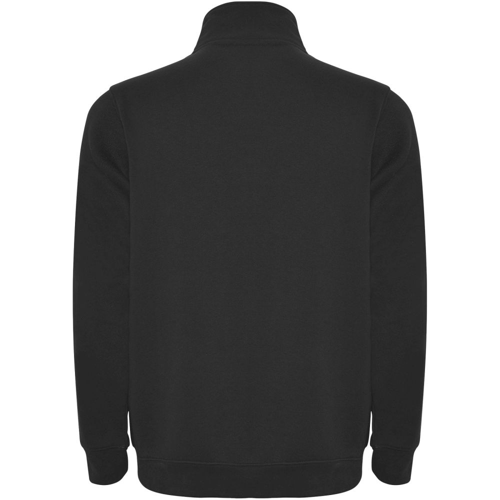Sweatshirt with matching half zip and polo neck. Matching inner collar. Reinforced covered seams on inner collar. 1x1 ribbed cuffs and waist. The model is 185 cm and is wearing size M.