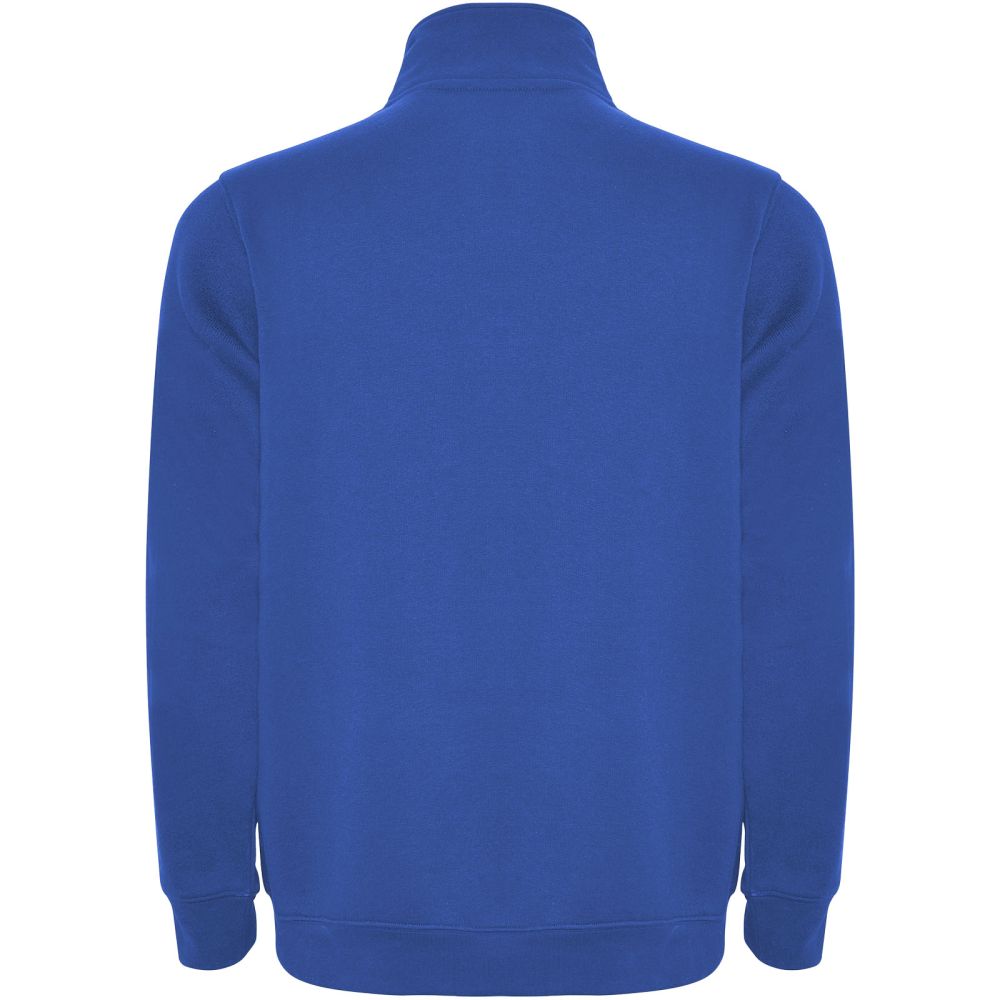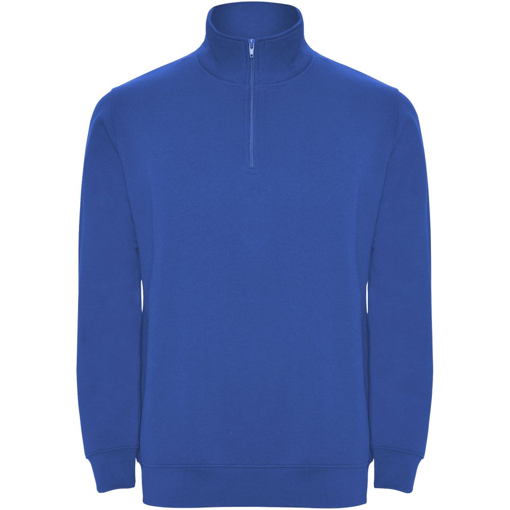 Sweatshirt with matching half zip and polo neck. Matching inner collar. Reinforced covered seams on inner collar. 1x1 ribbed cuffs and waist. The model is 185 cm and is wearing size M.
