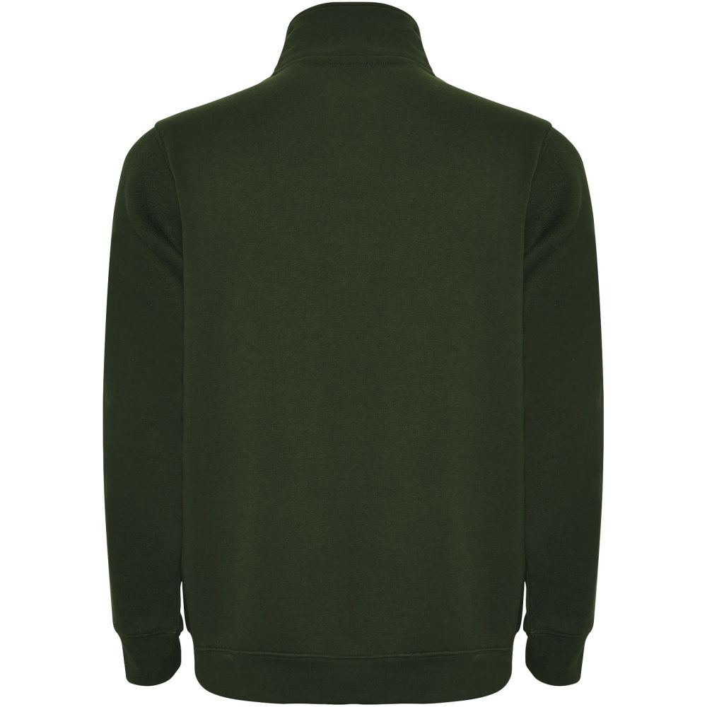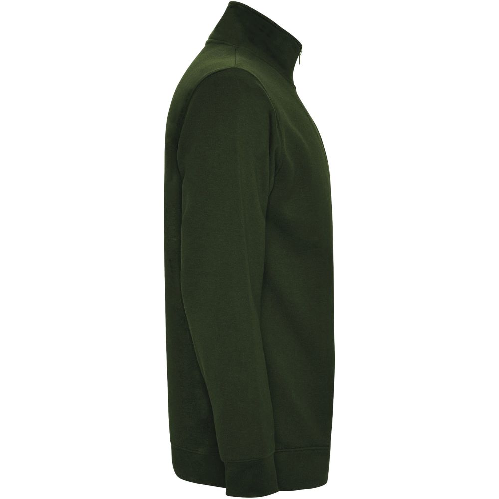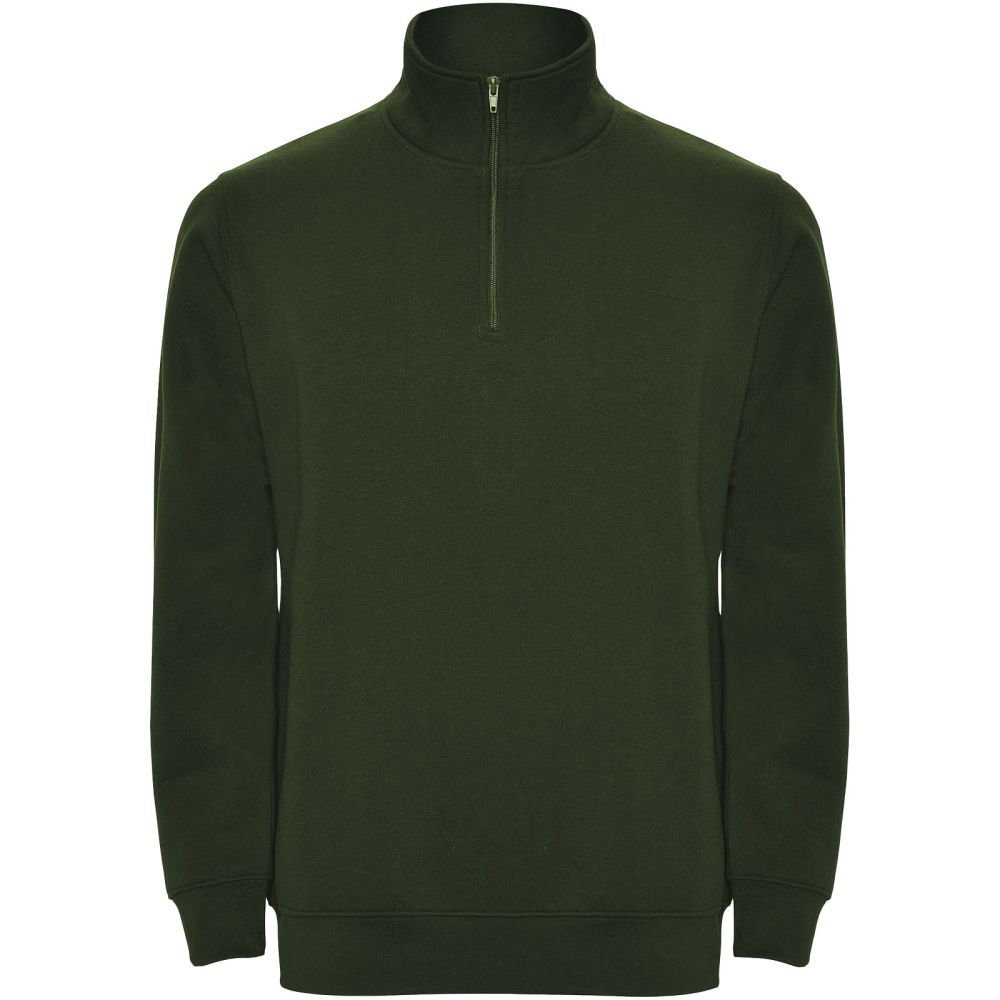 Sweatshirt with matching half zip and polo neck. Matching inner collar. Reinforced covered seams on inner collar. 1x1 ribbed cuffs and waist. The model is 185 cm and is wearing size M.