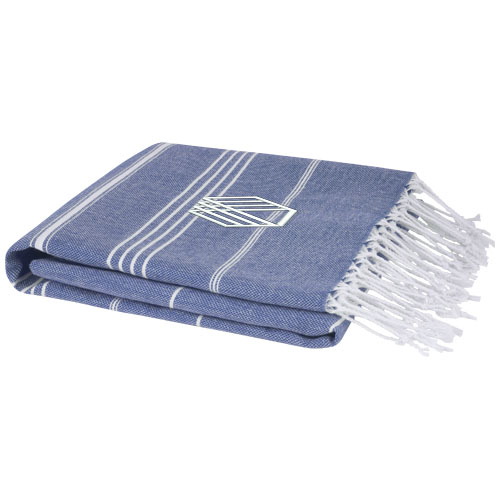 The Anna 150 g/m2 cotton hammam towel is made of 100% cotton, is soft and absorbent and have multiple uses. The towel dries quickly and is lightweight, making it easy to carry with you. Certified STANDARD 100 by OEKO-TEX®.