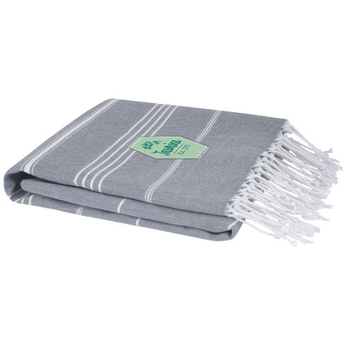 The Anna 150 g/m2 cotton hammam towel is made of 100% cotton, is soft and absorbent and have multiple uses. The towel dries quickly and is lightweight, making it easy to carry with you. Certified STANDARD 100 by OEKO-TEX®.