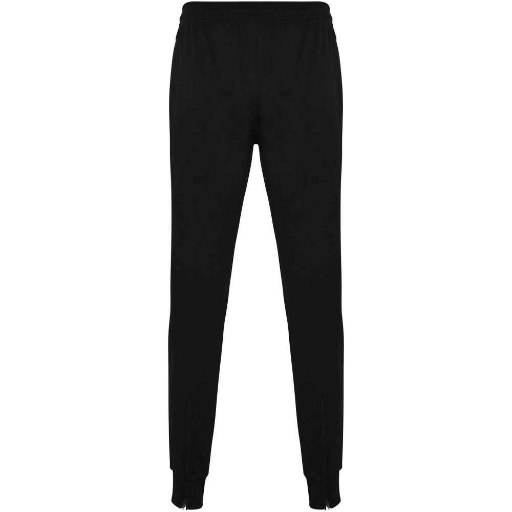 Trousers with adjustable elastic waistband with inner drawcord. Side pockets. Cuffs and zip on bottom leg. Removable label.
