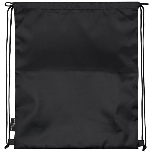 The Ash foldable recycled drawstring bag features a main compartment with cinch closure, and a zippered front pocket that the bag can easily fold up into for easy transport and storage.