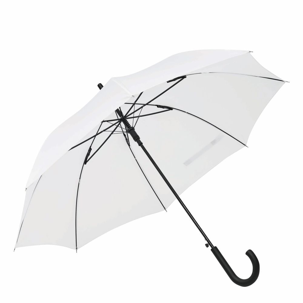 Automatic windproof stick umbrella WIND, with metal shaft, fibreglass ribs and metal tips with a rubber-coated crook handle and a polyester pongee canopy, closure with Velcro