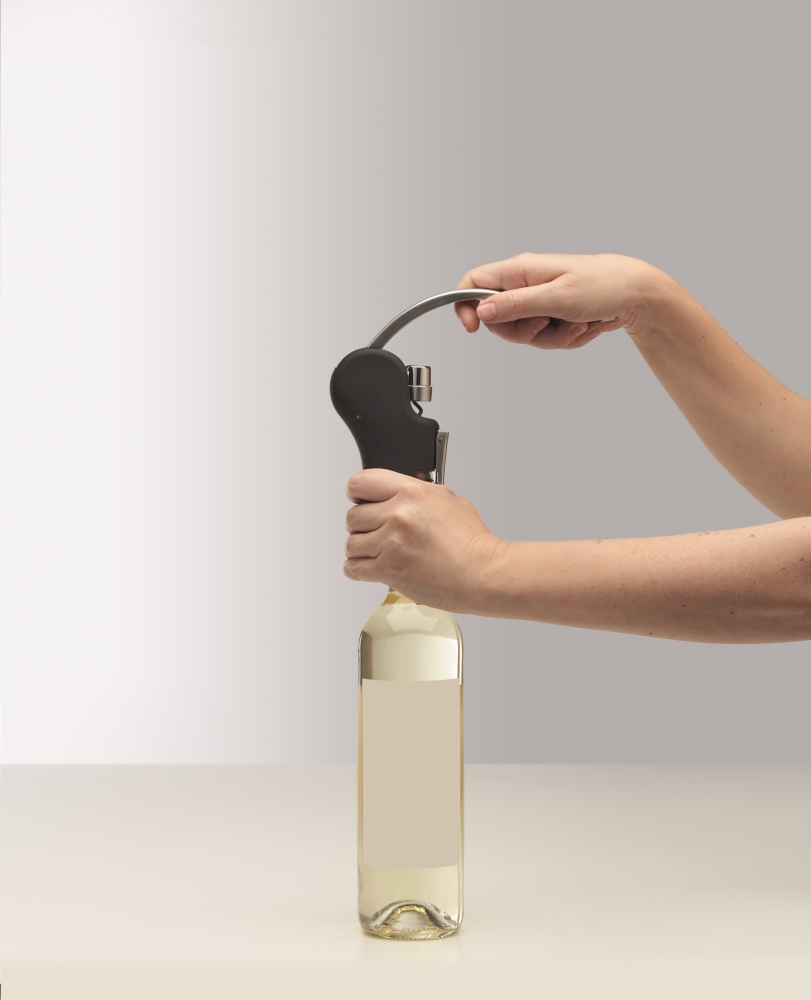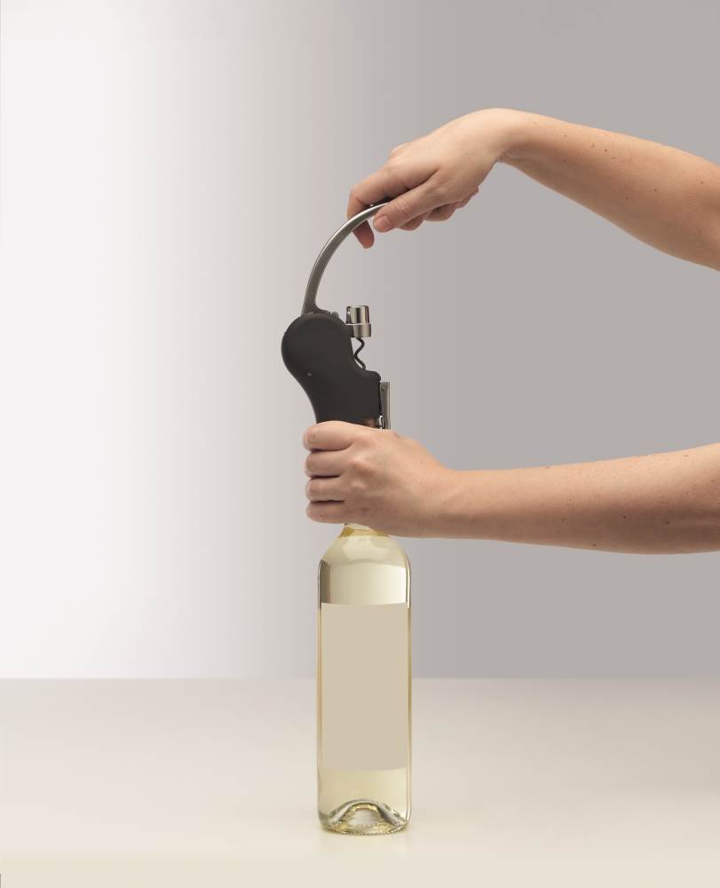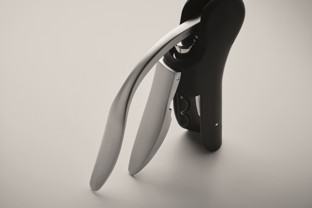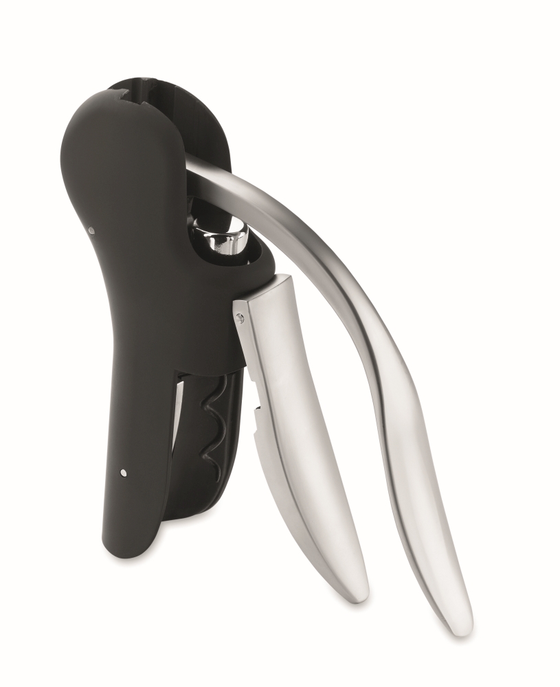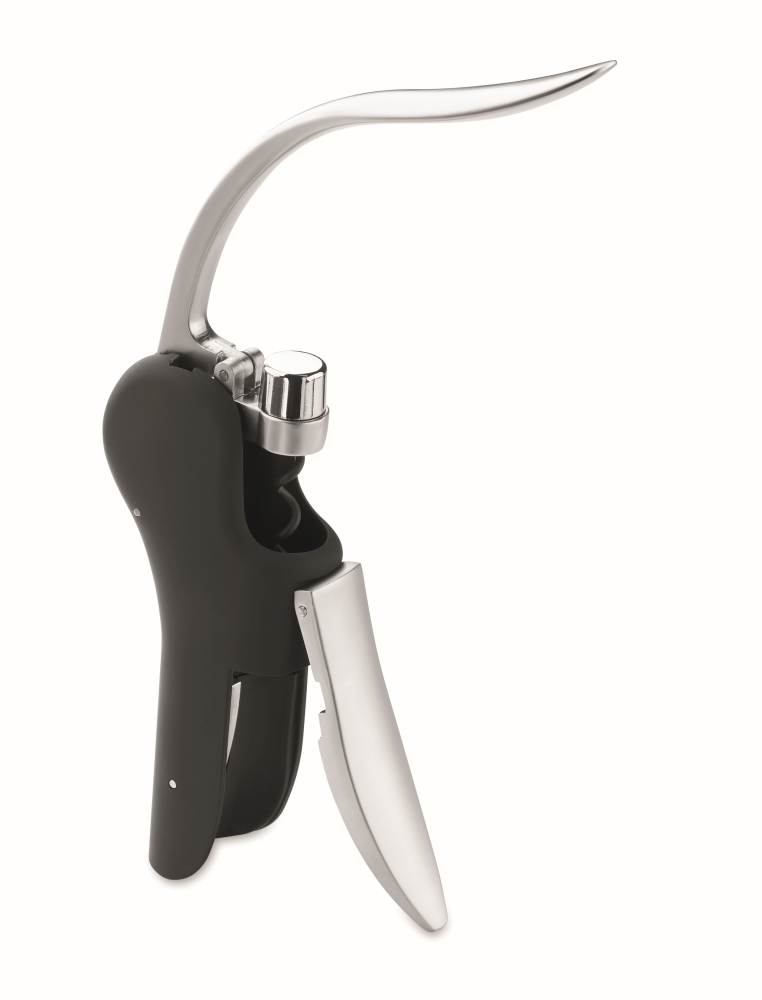 Automatic lever corkscrew in ABS and rubberised finish. Dimensions: 15 x 3 x 16 cm