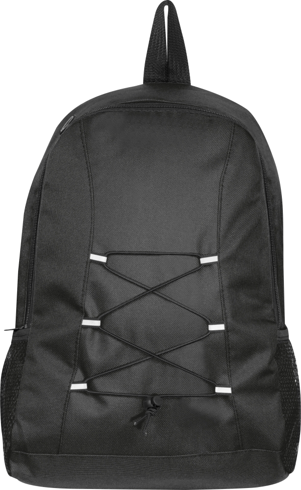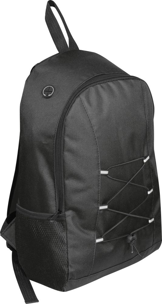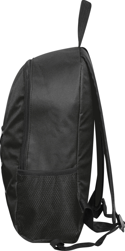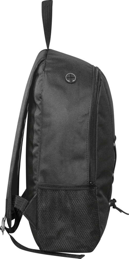 Backpack made of 600D recycled polyester with hanging loop, two side mesh pockets and two padded shoulder straps. Your advertising is printed on the front of the rucksack. Dimensions: 29 x 11,5 x 42 cm