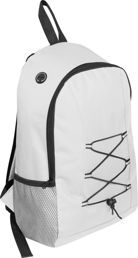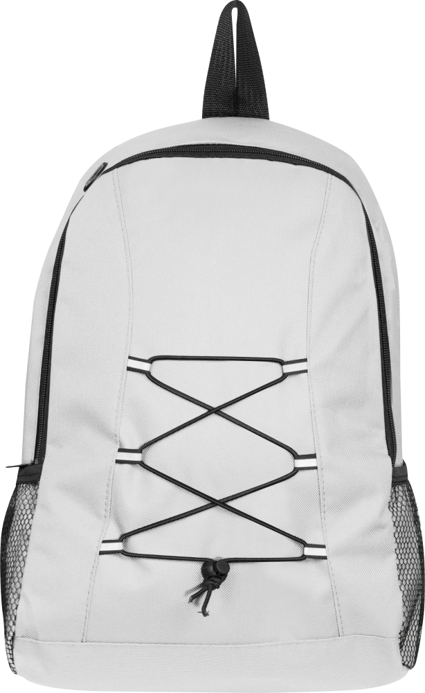 Backpack made of 600D recycled polyester with hanging loop, two side mesh pockets and two padded shoulder straps. Your advertising is printed on the front of the rucksack. Dimensions: 29 x 11,5 x 42 cm