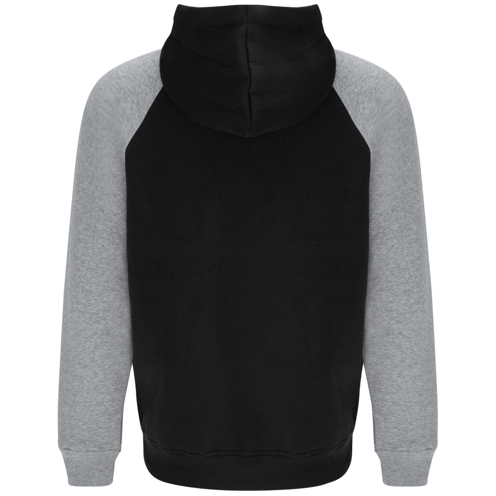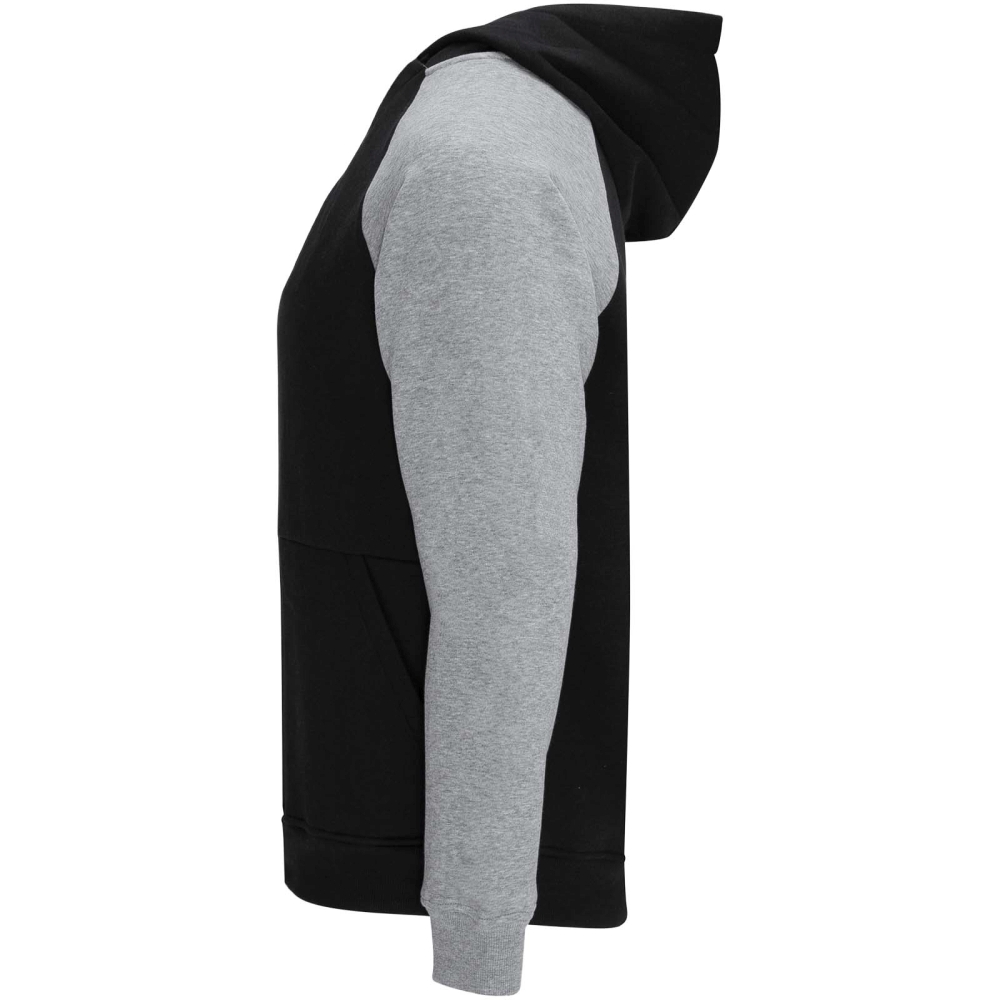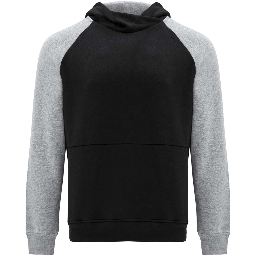 Two-colour unisex hoodie. Hood with crossed neck and metal eyelets. Contrasting inner hood, drawcord and raglan sleeves. Kangaroo pocket. Cuffs and hem in 1x1 elastane rib knit. Removable label.
