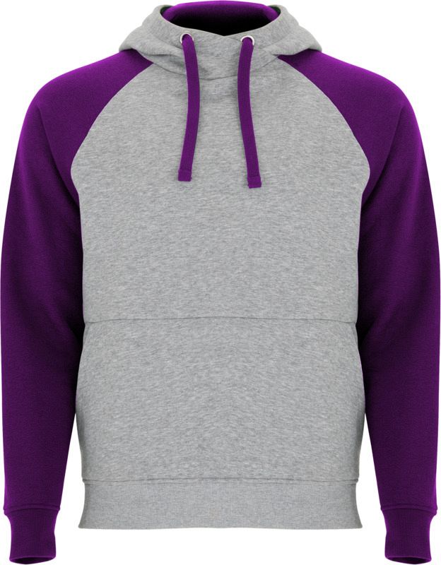 Two-colour unisex hoodie. Hood with crossed neck and metal eyelets. Contrasting inner hood, drawcord and raglan sleeves. Kangaroo pocket. Cuffs and hem in 1x1 elastane rib knit. Removable label. Brushed back sweater knit of 50% Cotton and 50% Polyester, 280 g/m2.