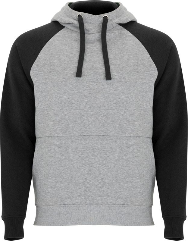 Two-colour unisex hoodie. Hood with crossed neck and metal eyelets. Contrasting inner hood, drawcord and raglan sleeves. Kangaroo pocket. Cuffs and hem in 1x1 elastane rib knit. Removable label. Brushed back sweater knit of 50% Cotton and 50% Polyester, 280 g/m2.