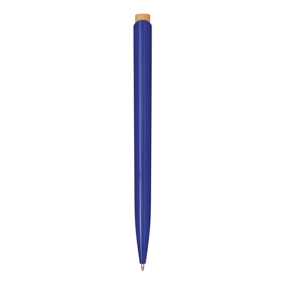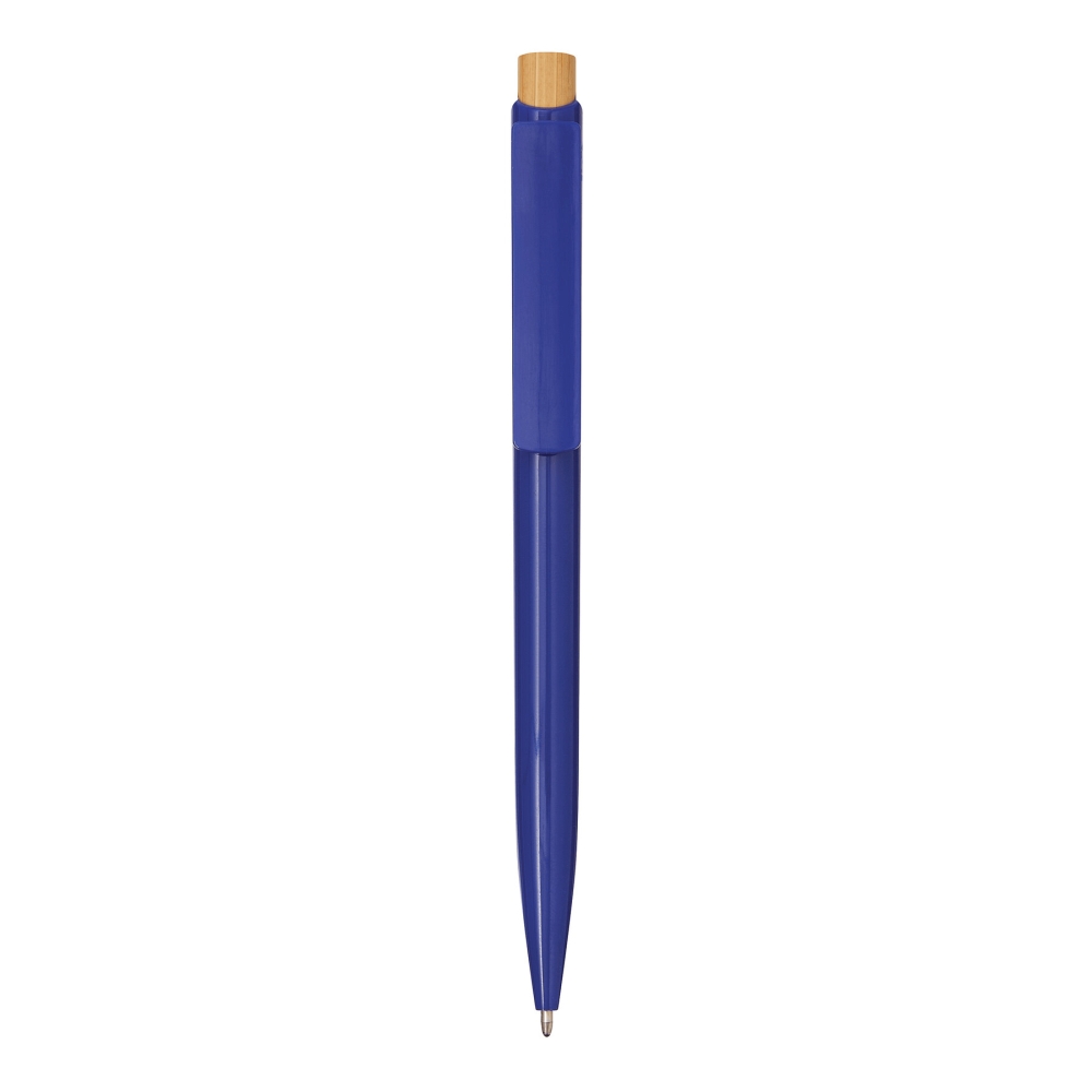 Ballpoint pen: barrel made from recycled plastic, push mechanism, pusher made of bamboo, blue ink. Dimensions: 13,5 cm