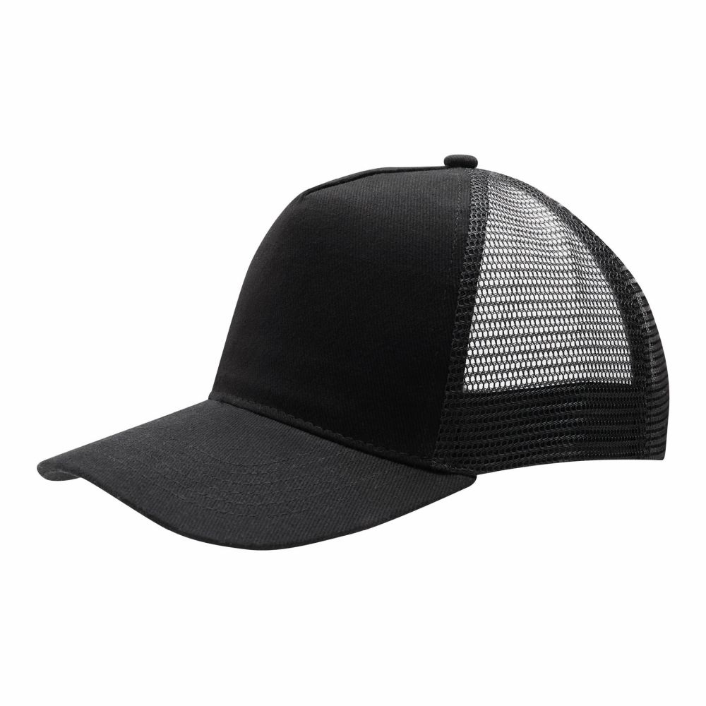 5-panel baseball cap FASTBALL reinforced front segment made of brushed cotton, other segments made of mesh, adjustable in size, double-row plastic fastener at the back