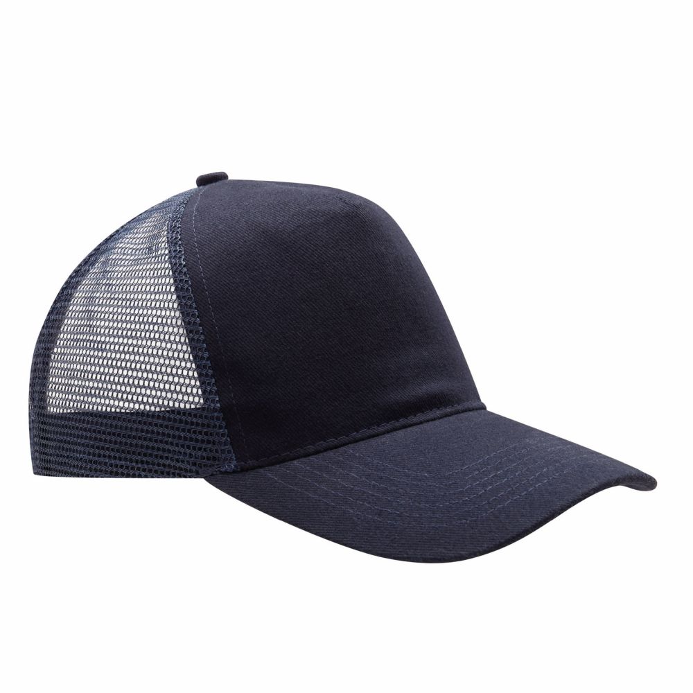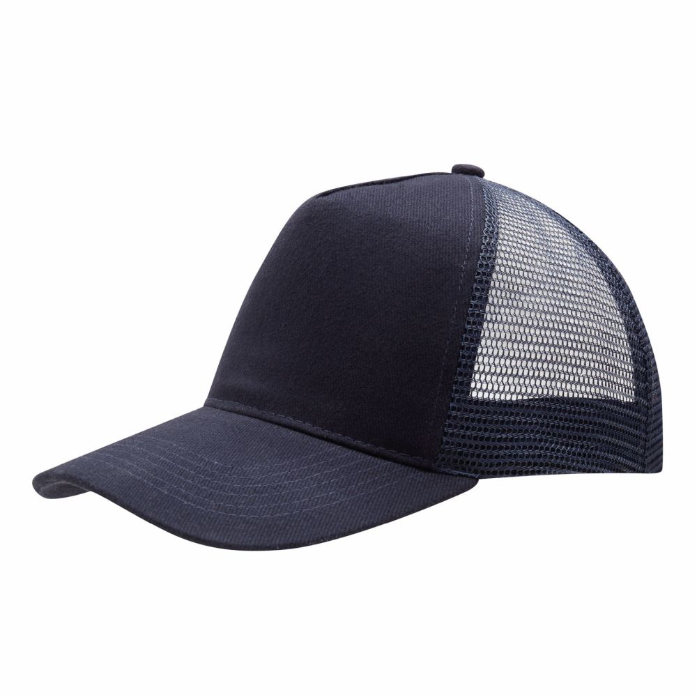 5-panel baseball cap FASTBALL reinforced front segment made of brushed cotton, other segments made of mesh, adjustable in size, double-row plastic fastener at the back