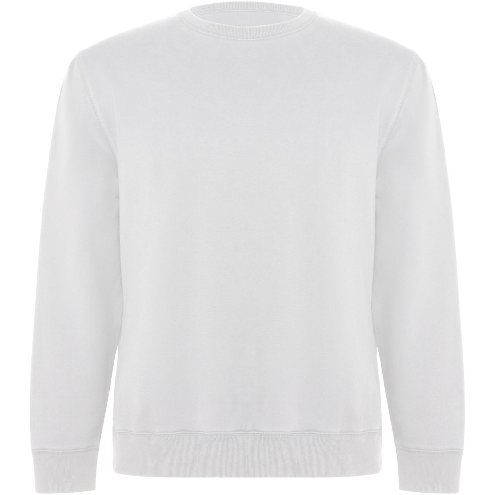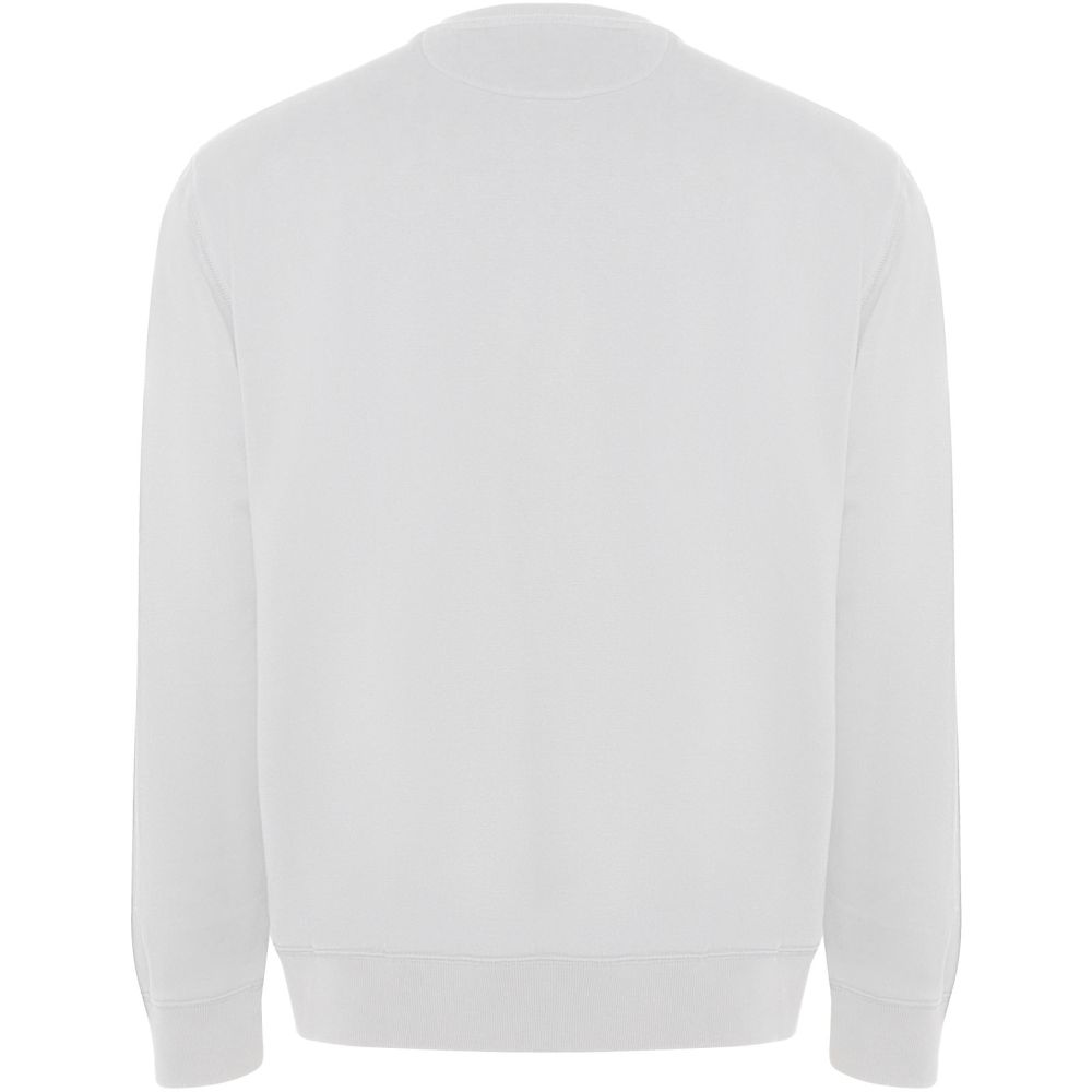 Unisex sweater in organic combed cotton and recycled polyester. Collar, cuffs and hem in 2x1 ribbed fabric. Decorative overlocked seams in shoulders, armholes, collar, cuffs and hem. Half moon seam on inner back collar. Removable label. Individual recycled packing. The model is 190 cm and is wearing size L.