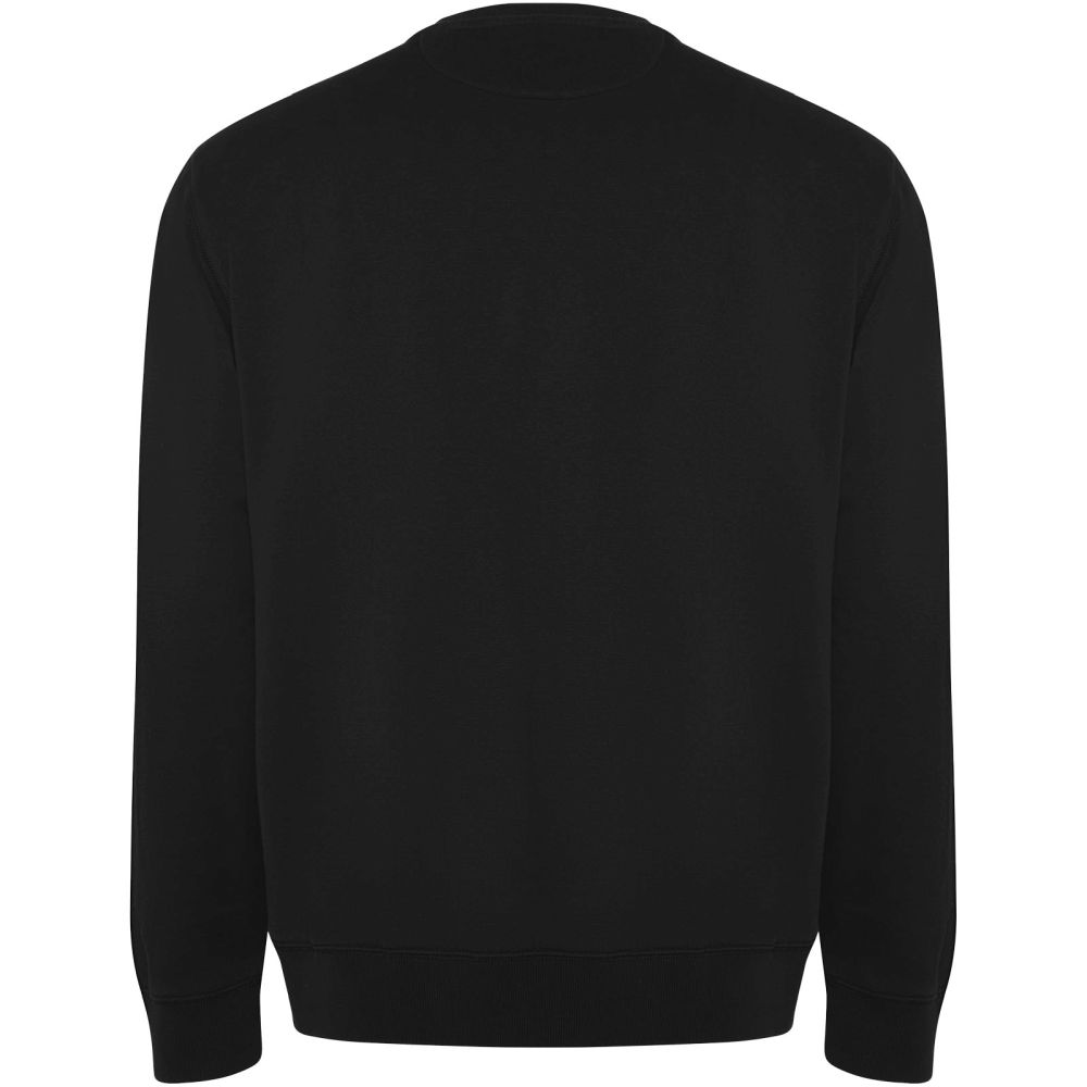 Unisex sweater in organic combed cotton and recycled polyester. Collar, cuffs and hem in 2x1 ribbed fabric. Decorative overlocked seams in shoulders, armholes, collar, cuffs and hem. Half moon seam on inner back collar. Removable label. Individual recycled packing. The model is 190 cm and is wearing size L.