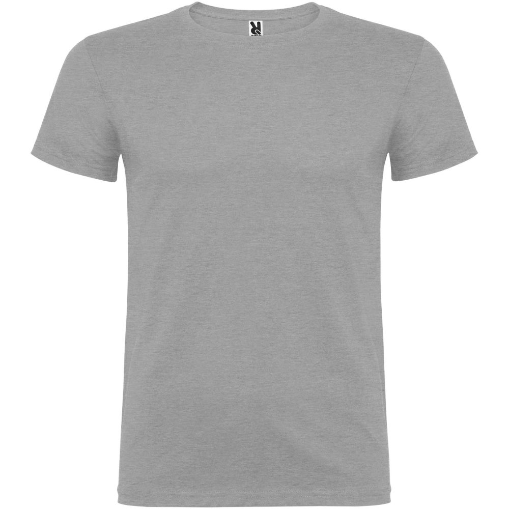 Short-sleeve t-shirt with double layer crew neck in elastane, made in tubular fabric for adults. Reinforced covered seams in collar. Removable label. The model is 190 cm and is wearing size L.