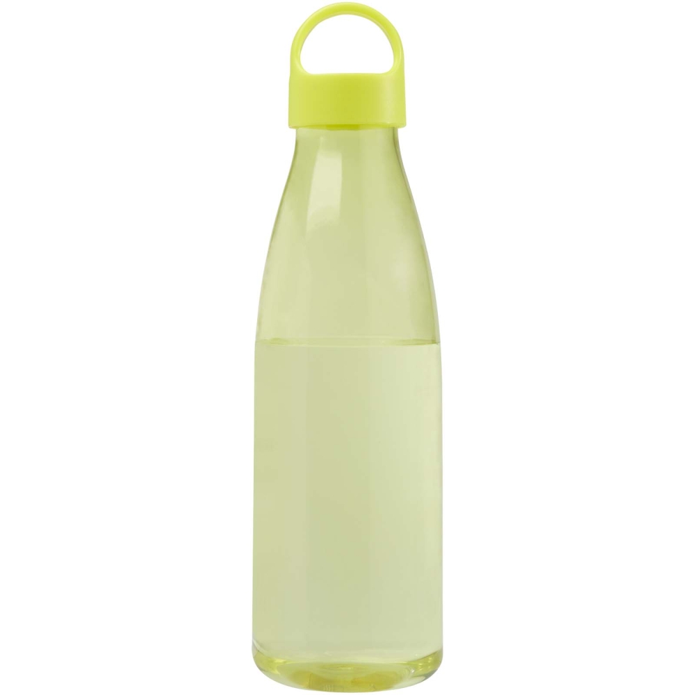 Water bottle made from RCS certified RPET, featuring a convenient carrying handle that is integrated with the cap. EFSA certified (European Food Safe Authority). Volume capacity: 800 ml. BPA free. Dimensions: 27 x O 7,5 cm