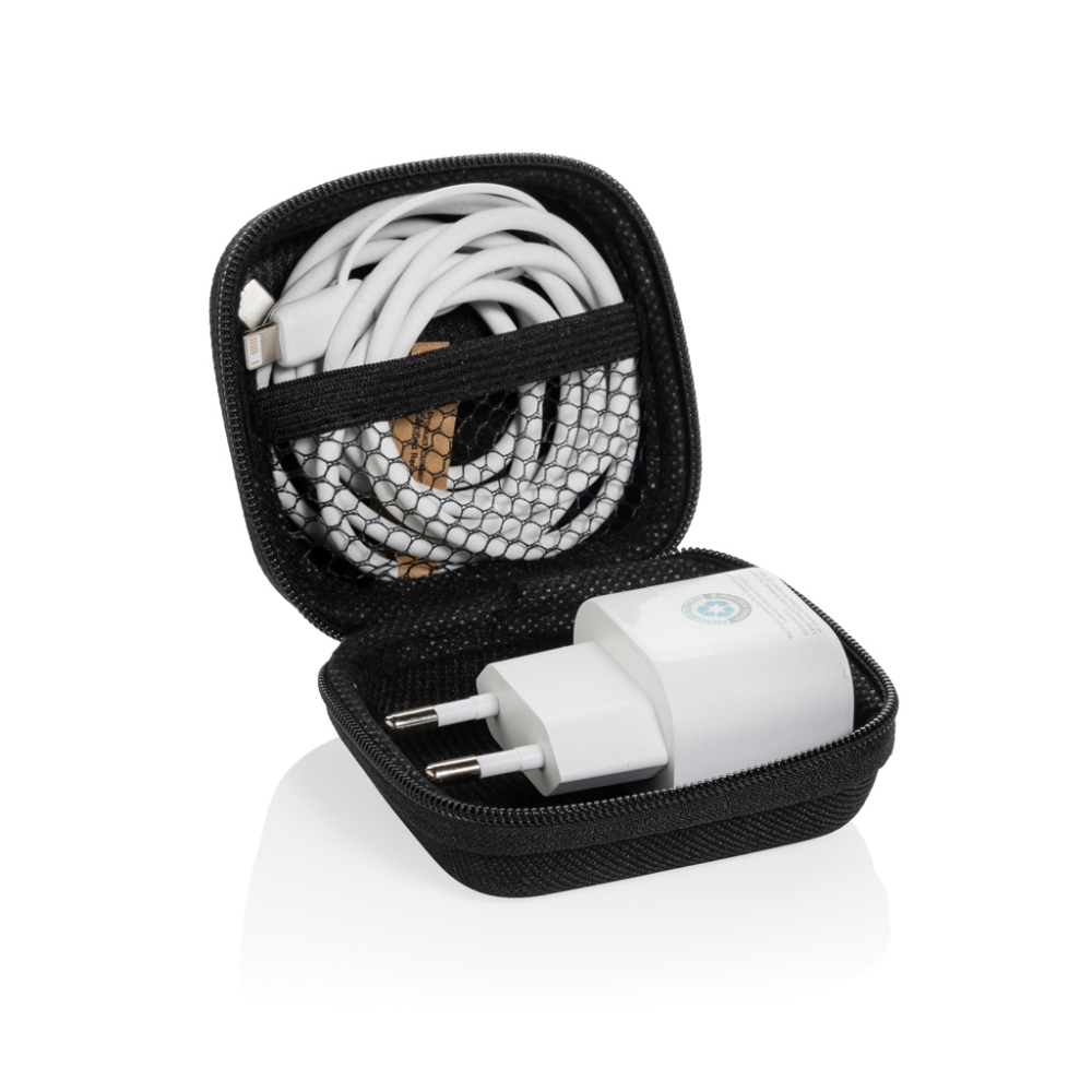 2 pcs 20W fast charging set for mobile devices and other small devices. With EU adapter with 20W USB C port and 120 cm recycled TPE 60W fast charging cable (USB C to USB /Lightning). The cable supports data transfer and also charging of larger devices lik