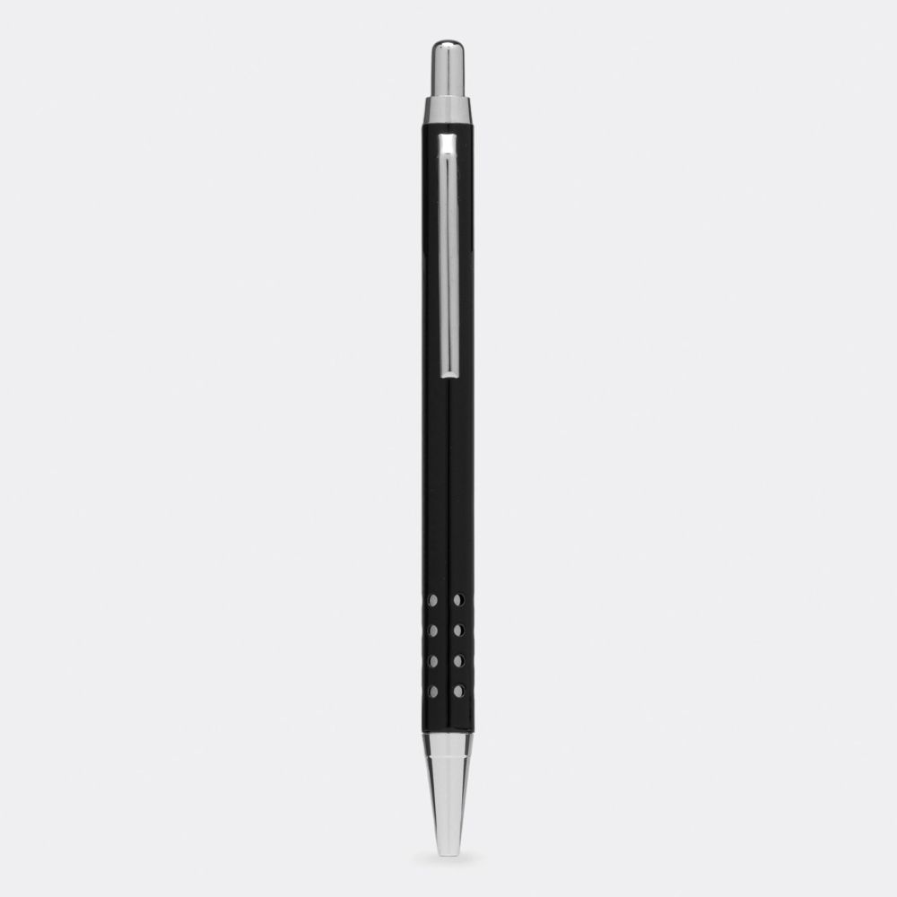 Brass ballpoint pen BUDAPEST: shaft with hole design, pressure mechanism, large refill, blue ink