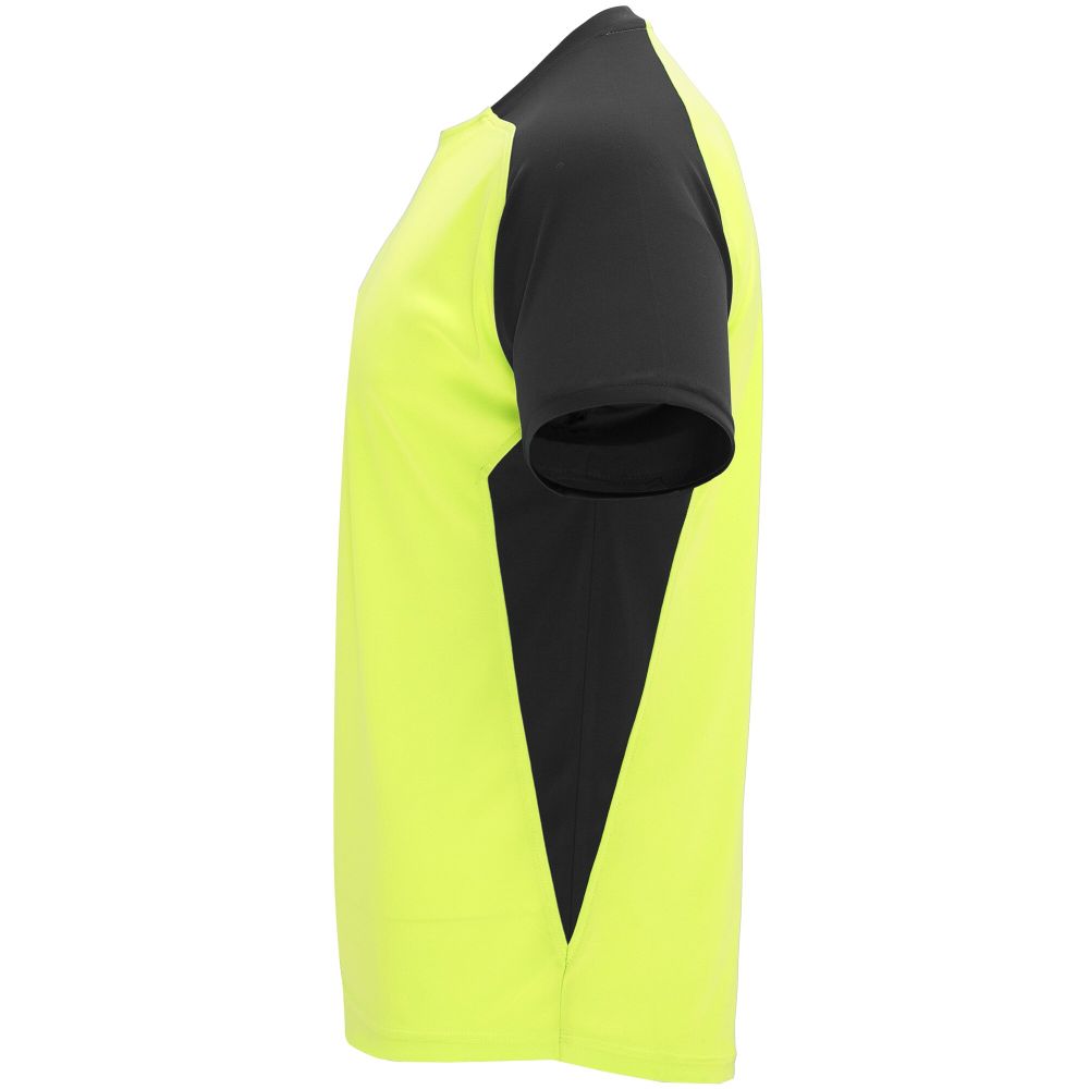 Technical and breathable fabric. Crew neck with matching covered seams. Raglan sleeves and contrasting side panels. Removable label. Mesh with cool fit finish of 100% Polyester, 140 g/m2.