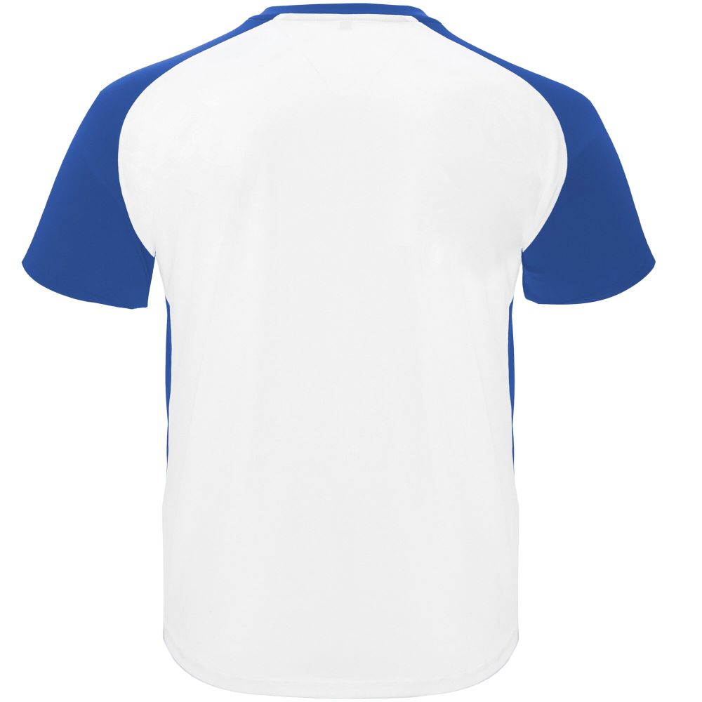 Technical and breathable fabric. Crew neck with matching covered seams. Raglan sleeves and contrasting side panels. Removable label. Mesh with cool fit finish of 100% Polyester, 140 g/m2.