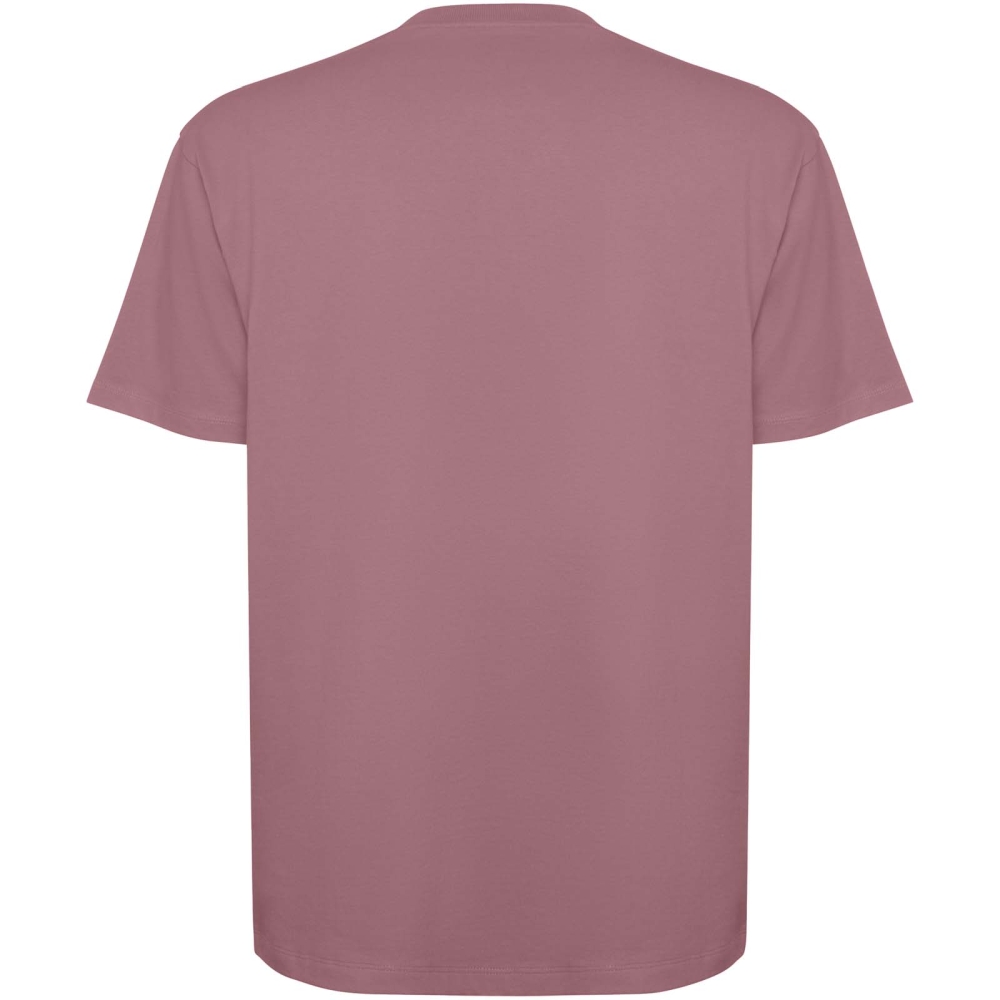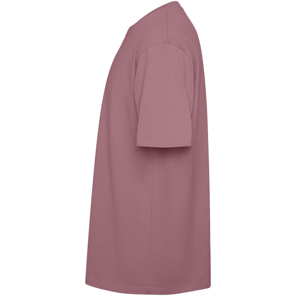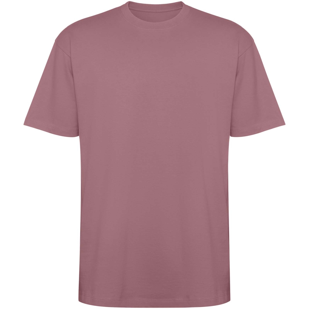 Oversized short sleeve t-shirt. Round collar trimmed in 2x1 rib with matching seam covers. Side seams. Wide double stitching on the sleeves and hem. Removable label.