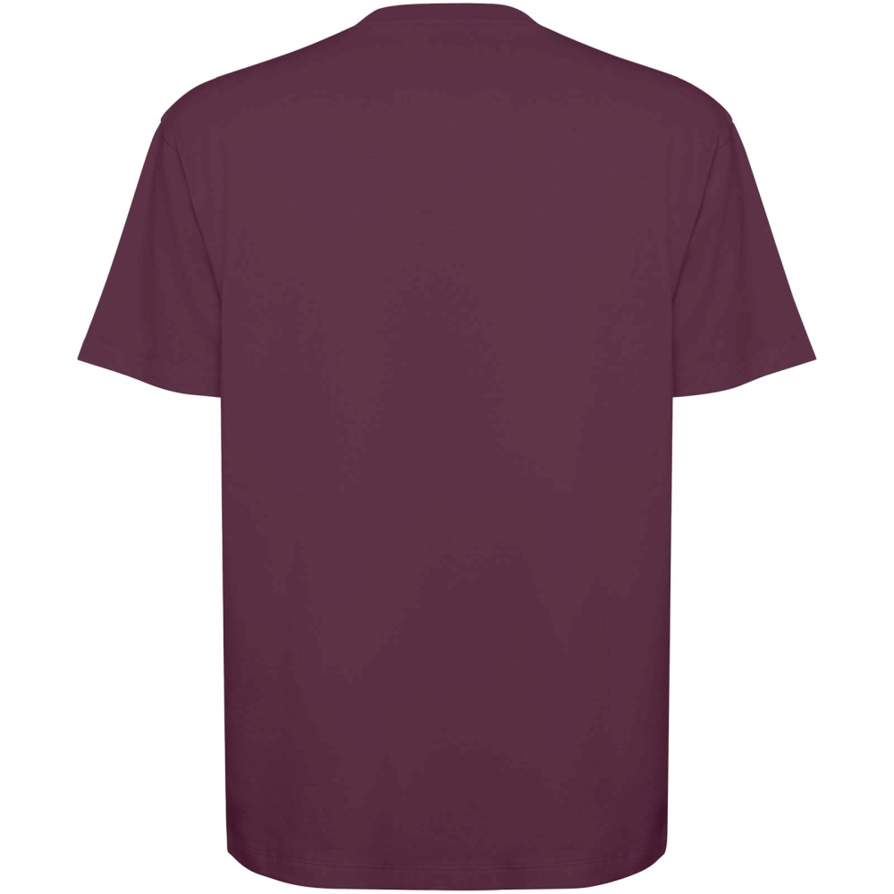 Oversized short sleeve t-shirt. Round collar trimmed in 2x1 rib with matching seam covers. Side seams. Wide double stitching on the sleeves and hem. Removable label.