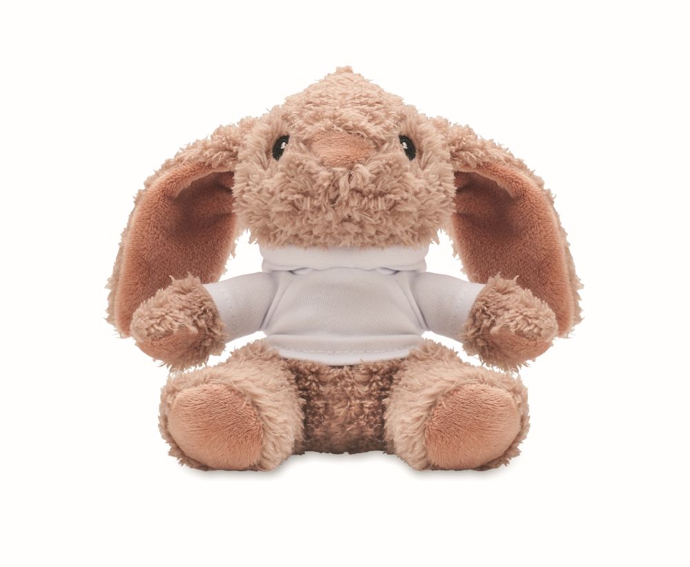 Bunny plush wearing a hooded sweater. Ideal for sublimation print.