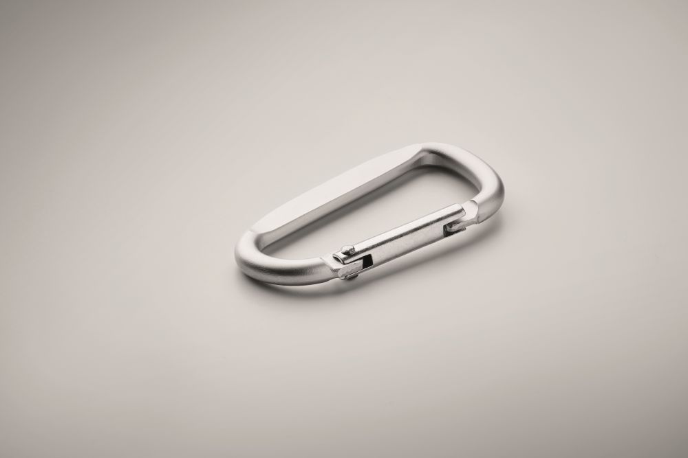 Carabiner clip in aluminium.